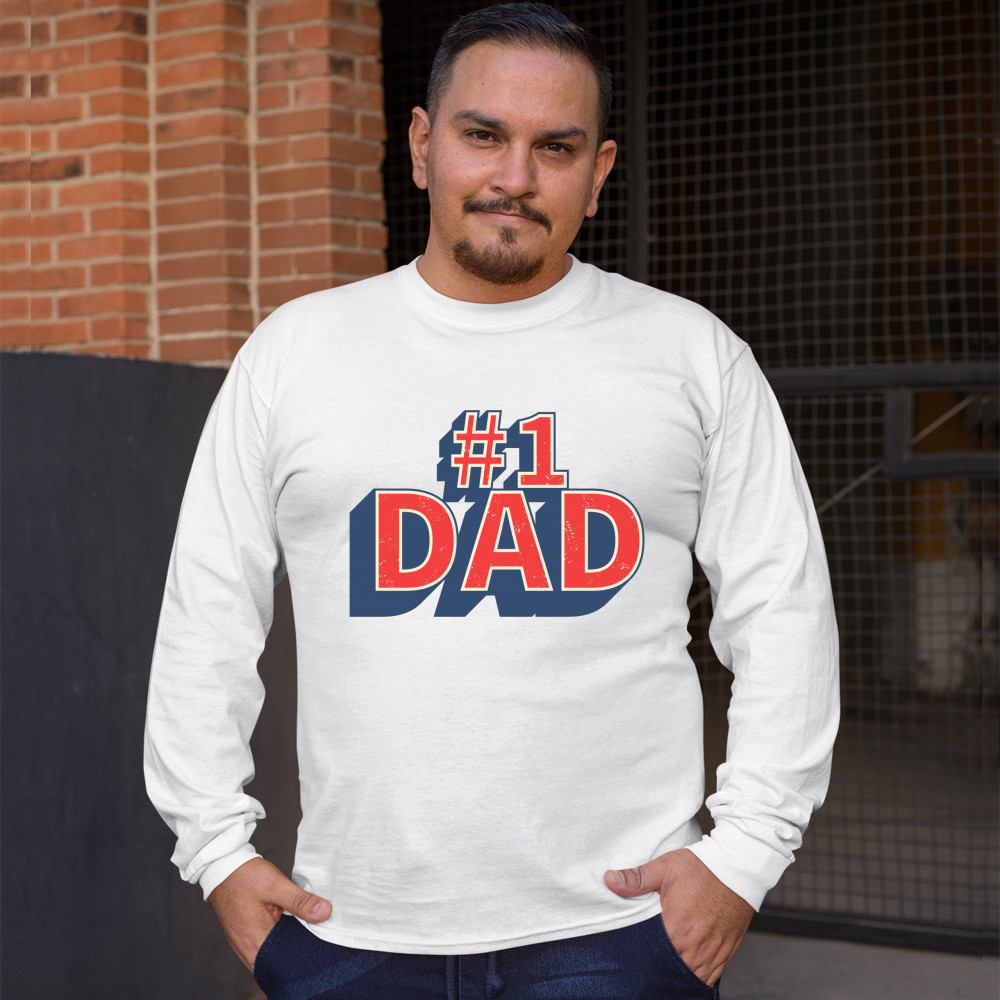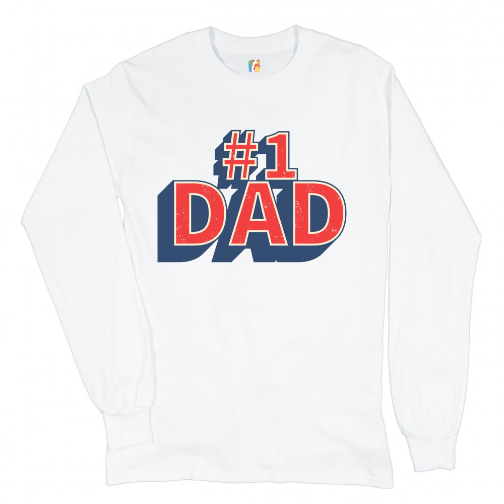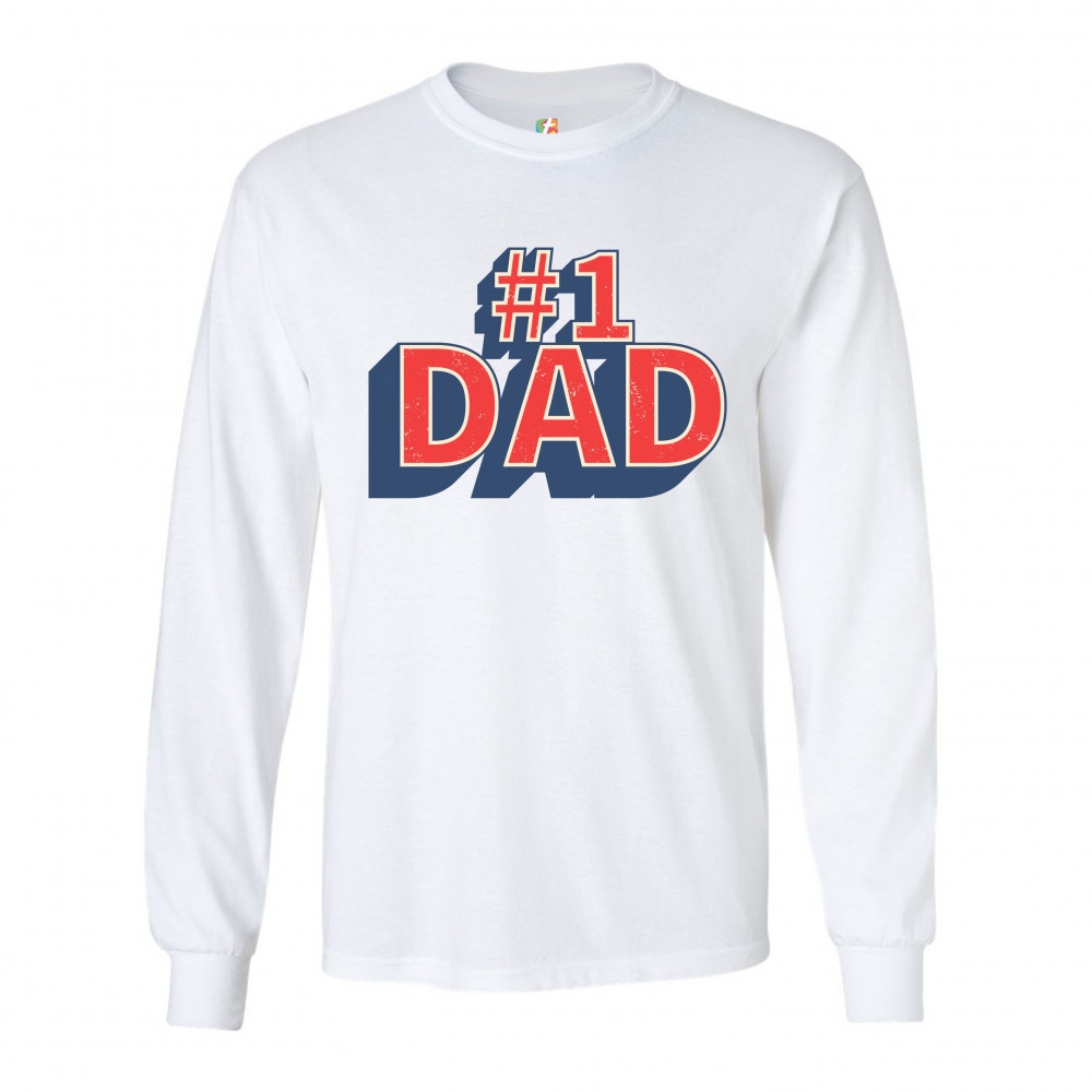 NUMBER 1 DAD long sleeve t-shirt father's day world's greatest dad fatherhood white