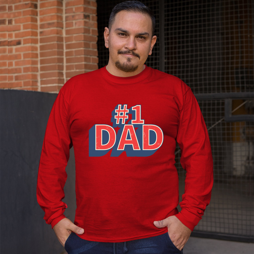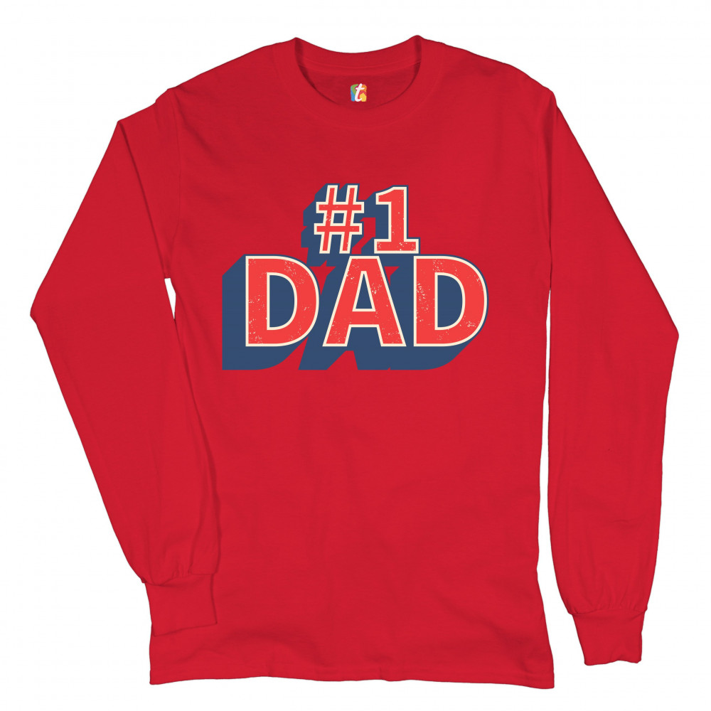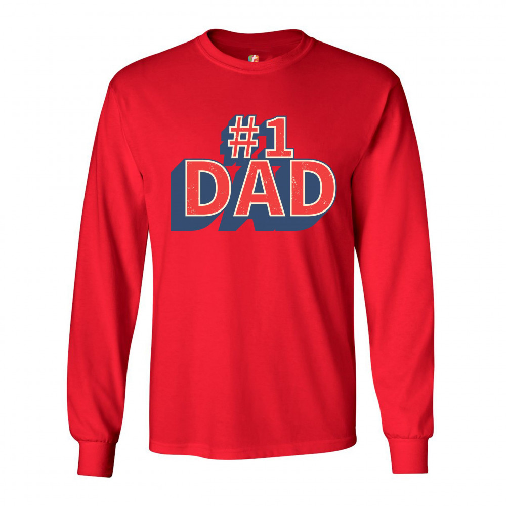 NUMBER 1 DAD long sleeve t-shirt father's day world's greatest dad fatherhood red