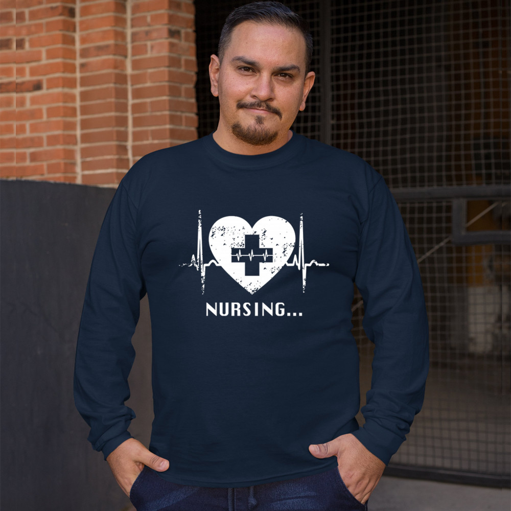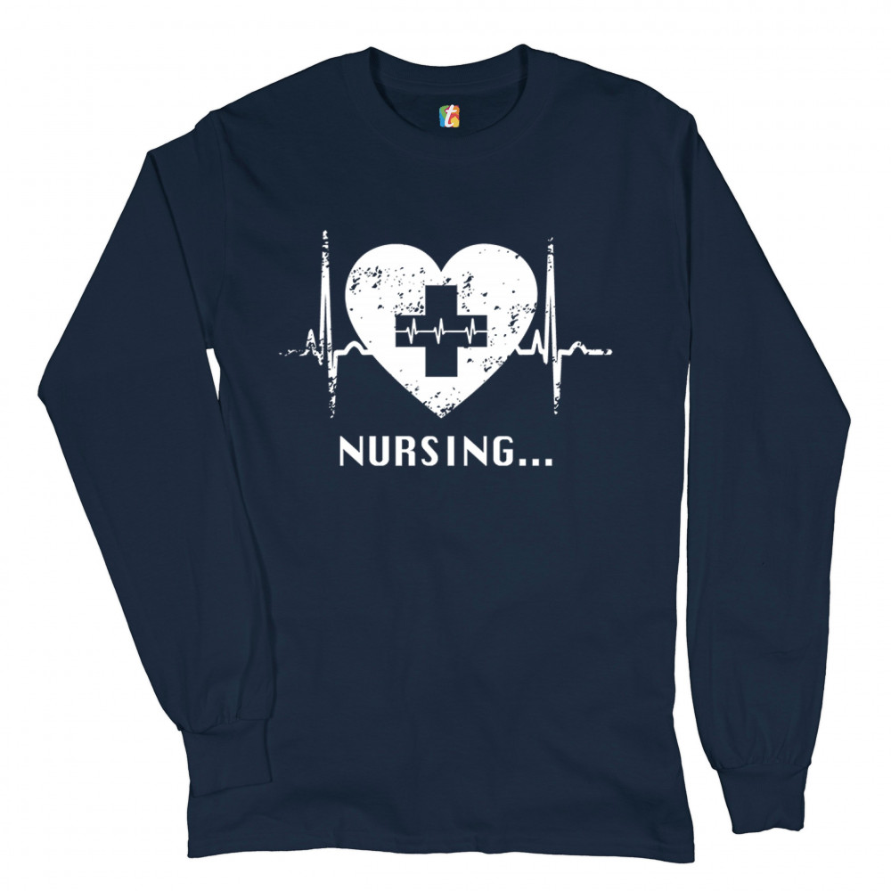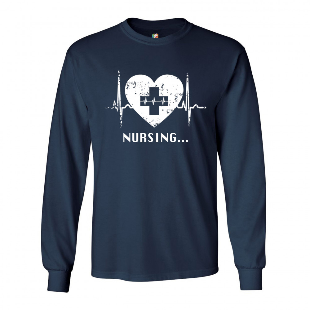NURSING HEARTBEAT long sleeve t-shirt cpr first aid medical assistant emt ems navy blue