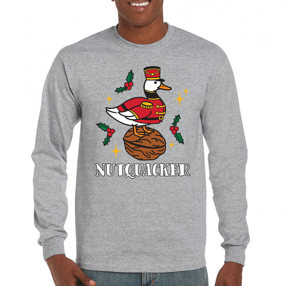 Funny Nutquacker Christmas design featuring a festive duck, holiday humor, and seasonal charm. Great for parties, gifts, and cheerful holiday style.