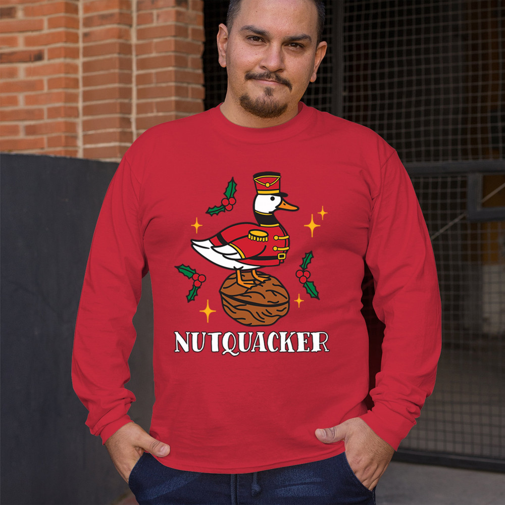 Funny Nutquacker Christmas design featuring a festive duck, holiday humor, and seasonal charm. Great for parties, gifts, and cheerful holiday style.