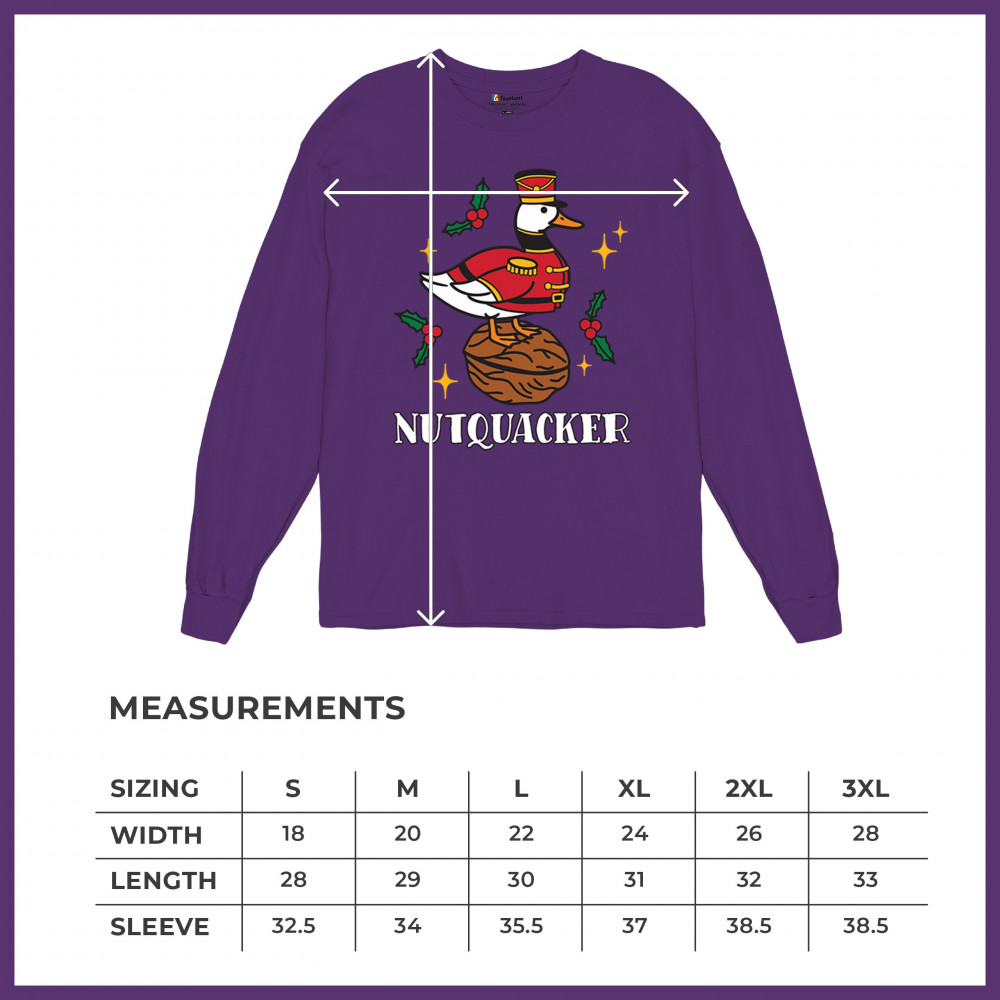 This hilarious Nutquacker design puts a festive spin on holiday humor, showcasing a duck dressed as a nutcracker standing on a walnut with holly accents and bright Christmas touches. A perfect choice for quirky gift-givers, holiday party outfits, and anyone who loves clever Christmas graphics that add personality, charm, and seasonal fun to their celebrations.