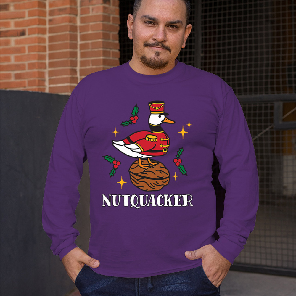 Funny Nutquacker Christmas design featuring a festive duck, holiday humor, and seasonal charm. Great for parties, gifts, and cheerful holiday style.