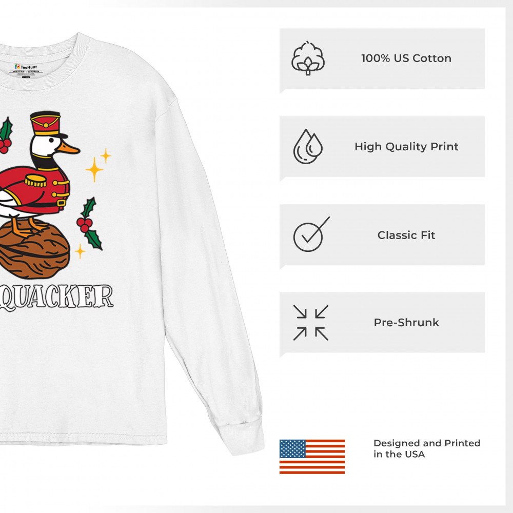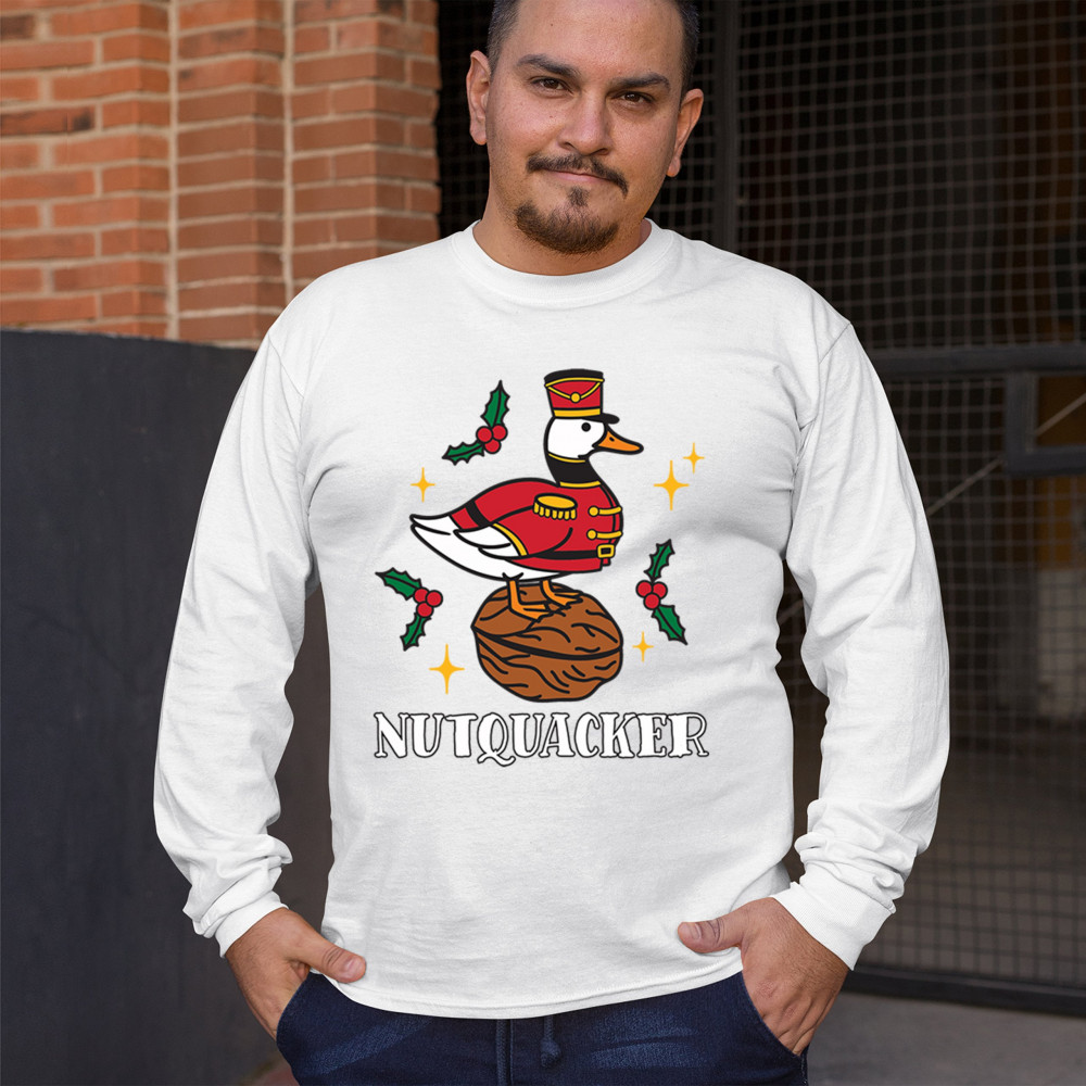 Funny Nutquacker Christmas design featuring a festive duck, holiday humor, and seasonal charm. Great for parties, gifts, and cheerful holiday style.