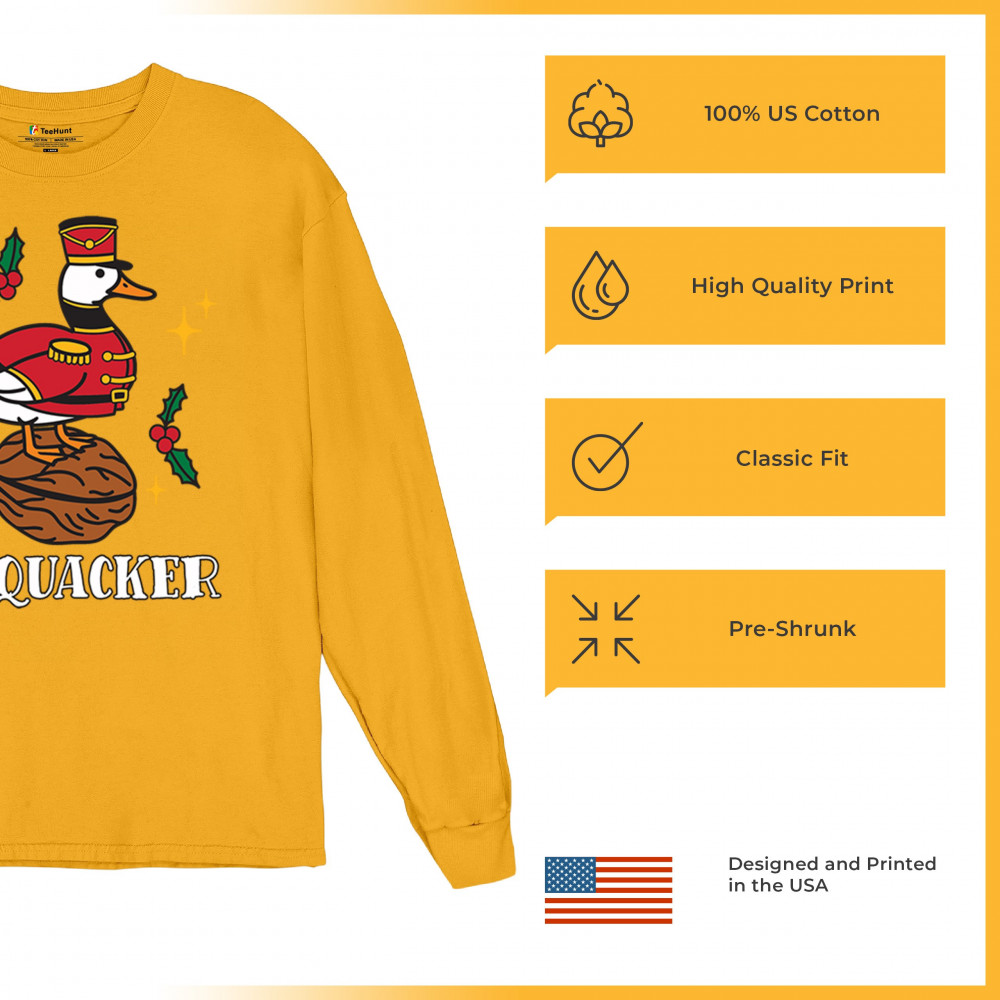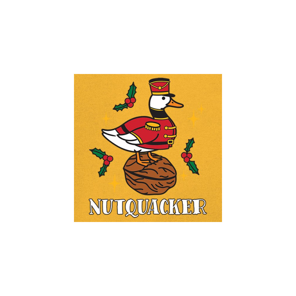Funny Nutquacker Christmas design featuring a festive duck, holiday humor, and seasonal charm. Great for parties, gifts, and cheerful holiday style.