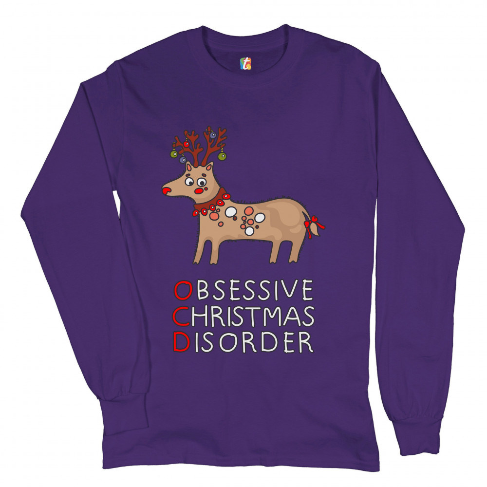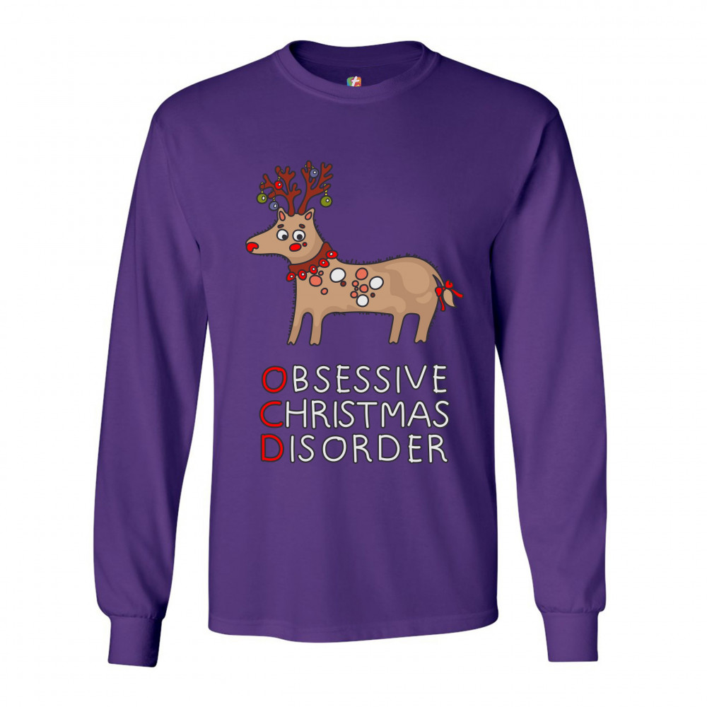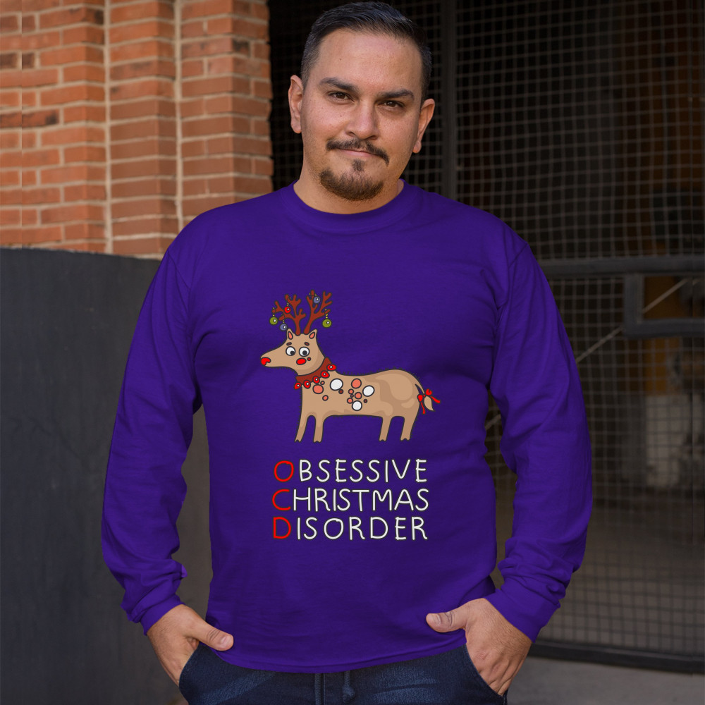 OCD OBSESSIVE CHRISTMAS DISORDER long sleeve t-shirt reindeer rudolph funny purple