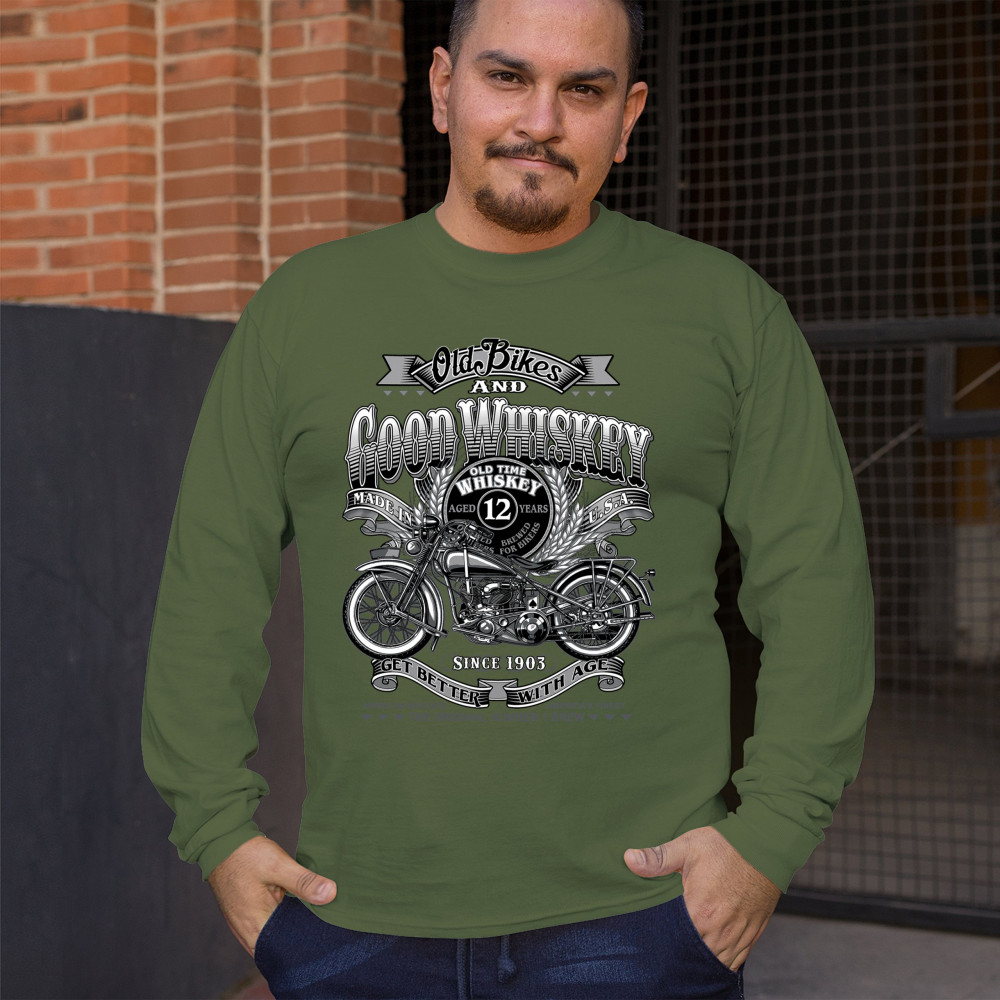 Celebrate the timeless bond between old motorcycles and good whiskey with a design that features a vintage bike, bold 12-year label, and “Since 1903†tribute. Perfect for motorcycle riders, whiskey lovers, and anyone who embraces the rugged lifestyle of grit, age, and road-tested taste. Ideal for garage wear, bar hangs, or biker events.