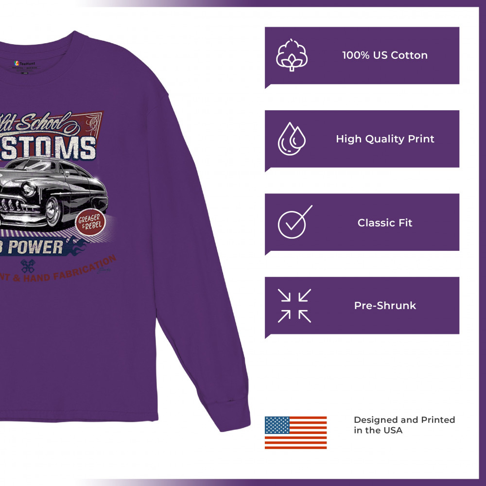 Step into the world of classic automotive culture with our "Old School Customs" t-shirt. Featuring a bold V8 power design, this shirt highlights the art of custom paint and hand fabrication. It's perfect for car enthusiasts, greasers, and rebels who appreciate the unique style of vintage rides. Made from high-quality materials, this tee offers comfort and durability, making it a great choice for car shows or casual outings. Show your love for old-school cars and stand out with this stylish and nostalgic piece. Add a touch of vintage charm to your wardrobe today.