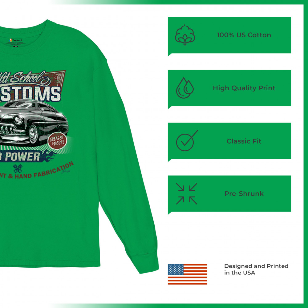 Step into the world of classic automotive culture with our "Old School Customs" t-shirt. Featuring a bold V8 power design, this shirt highlights the art of custom paint and hand fabrication. It's perfect for car enthusiasts, greasers, and rebels who appreciate the unique style of vintage rides. Made from high-quality materials, this tee offers comfort and durability, making it a great choice for car shows or casual outings. Show your love for old-school cars and stand out with this stylish and nostalgic piece. Add a touch of vintage charm to your wardrobe today.