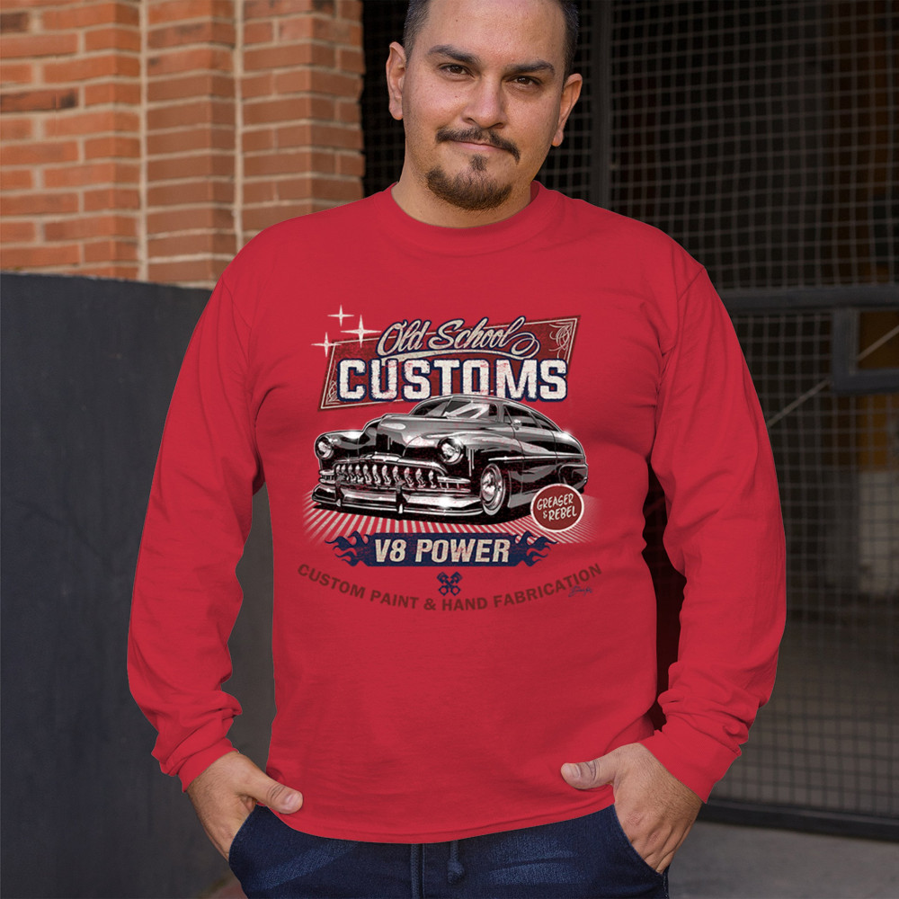 Step into the world of classic automotive culture with our "Old School Customs" t-shirt. Featuring a bold V8 power design, this shirt highlights the art of custom paint and hand fabrication. It's perfect for car enthusiasts, greasers, and rebels who appreciate the unique style of vintage rides. Made from high-quality materials, this tee offers comfort and durability, making it a great choice for car shows or casual outings. Show your love for old-school cars and stand out with this stylish and nostalgic piece. Add a touch of vintage charm to your wardrobe today.