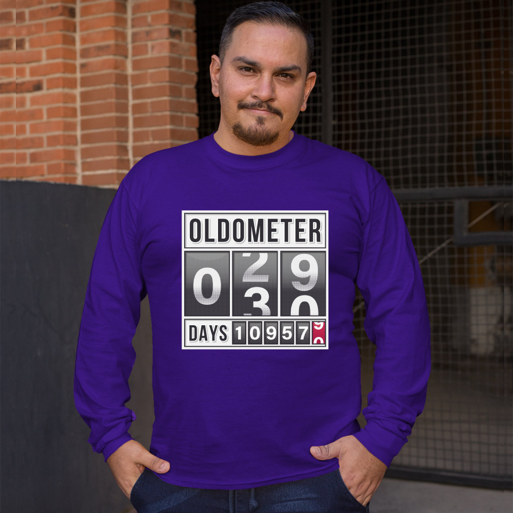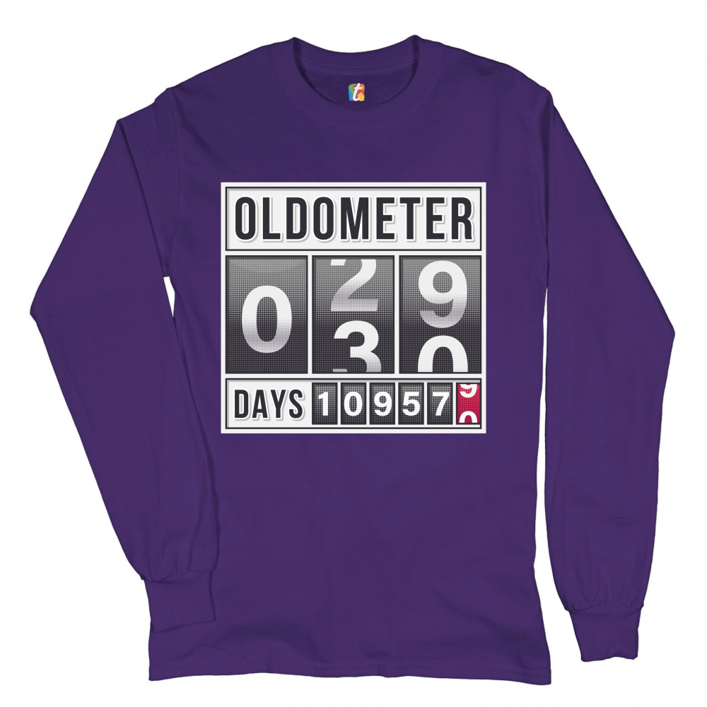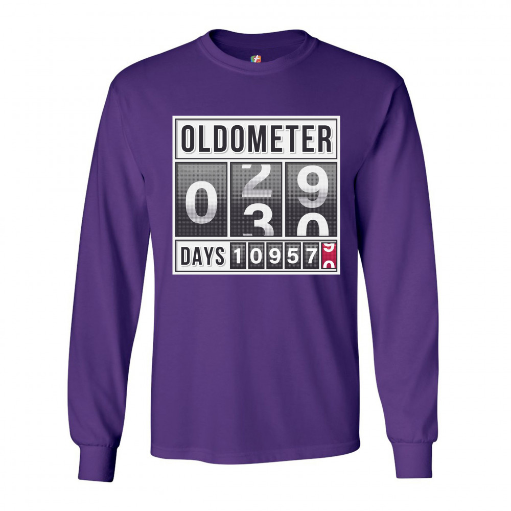 OLDOMETER 29-30 long sleeve t-shirt funny odometer anniversary birthday purple