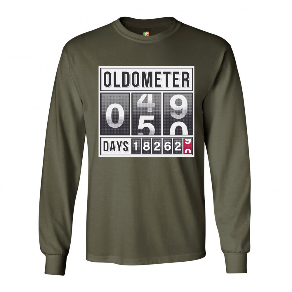 OLDOMETER 49-50 long sleeve t-shirt 50th anniversary 50 af funny odometer military green