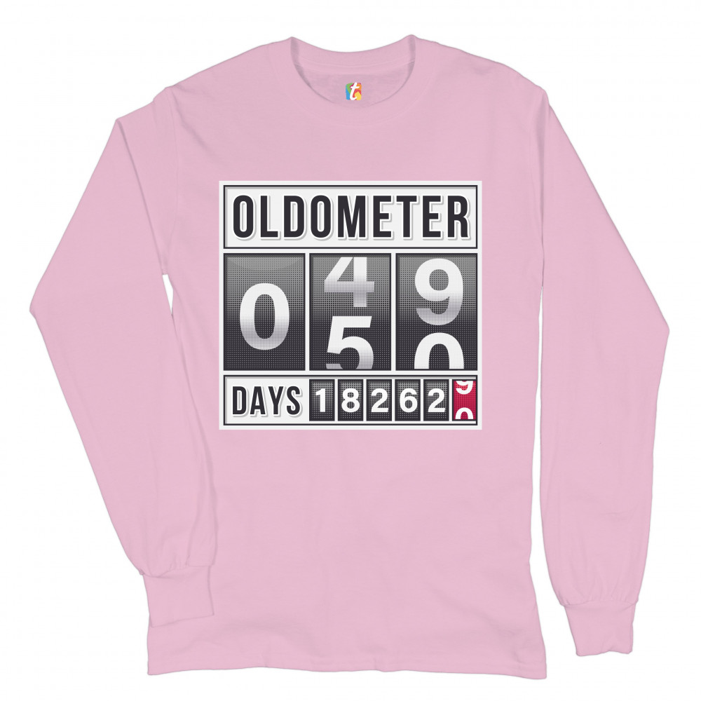 OLDOMETER 49-50 long sleeve t-shirt 50th anniversary 50 af funny odometer pink
