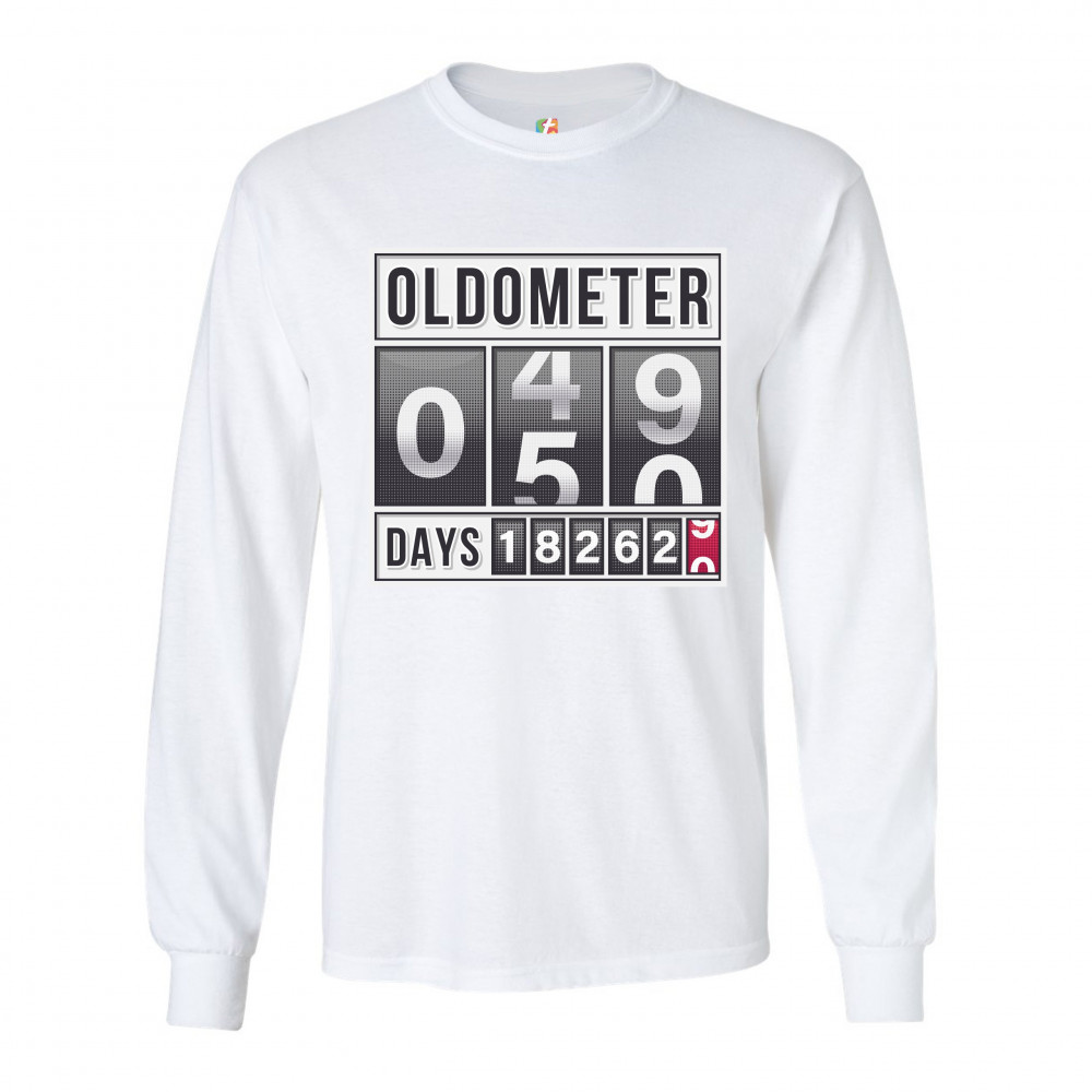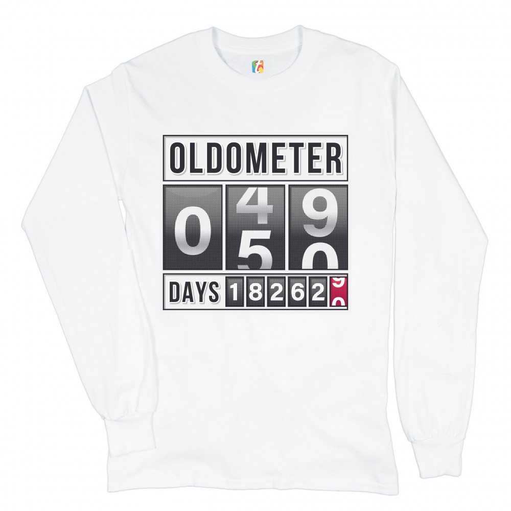 OLDOMETER 49-50 long sleeve t-shirt 50th anniversary 50 af funny odometer white