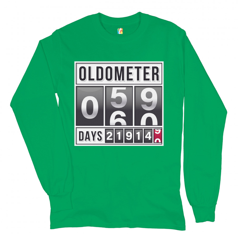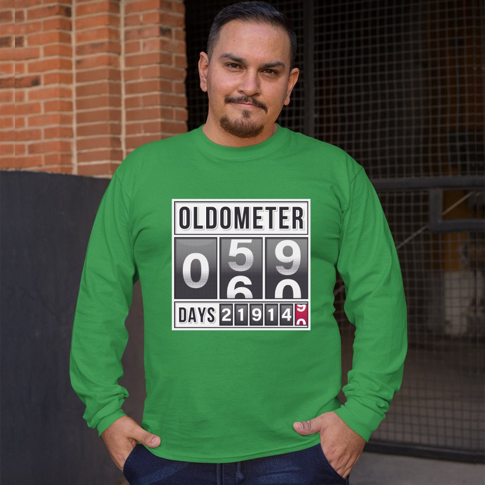 OLDOMETER 59-60 long sleeve t-shirt old lives matter funny odometer 60 af green
