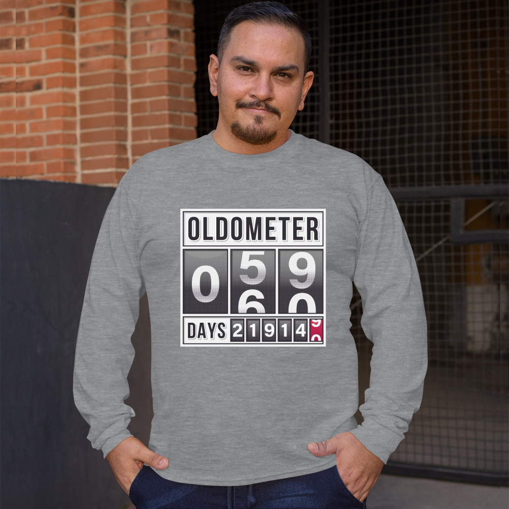 OLDOMETER 59-60 long sleeve t-shirt old lives matter funny odometer 60 af gray