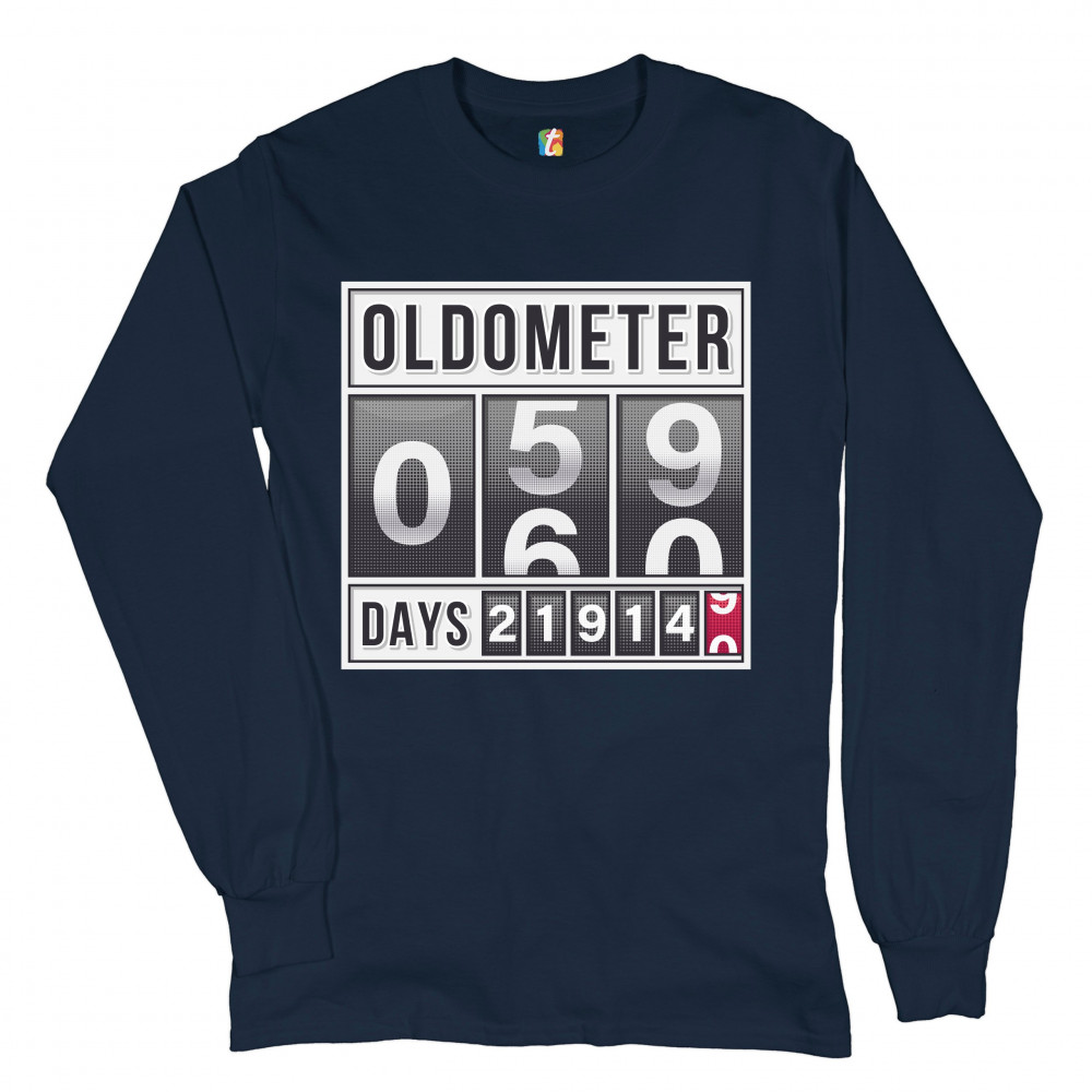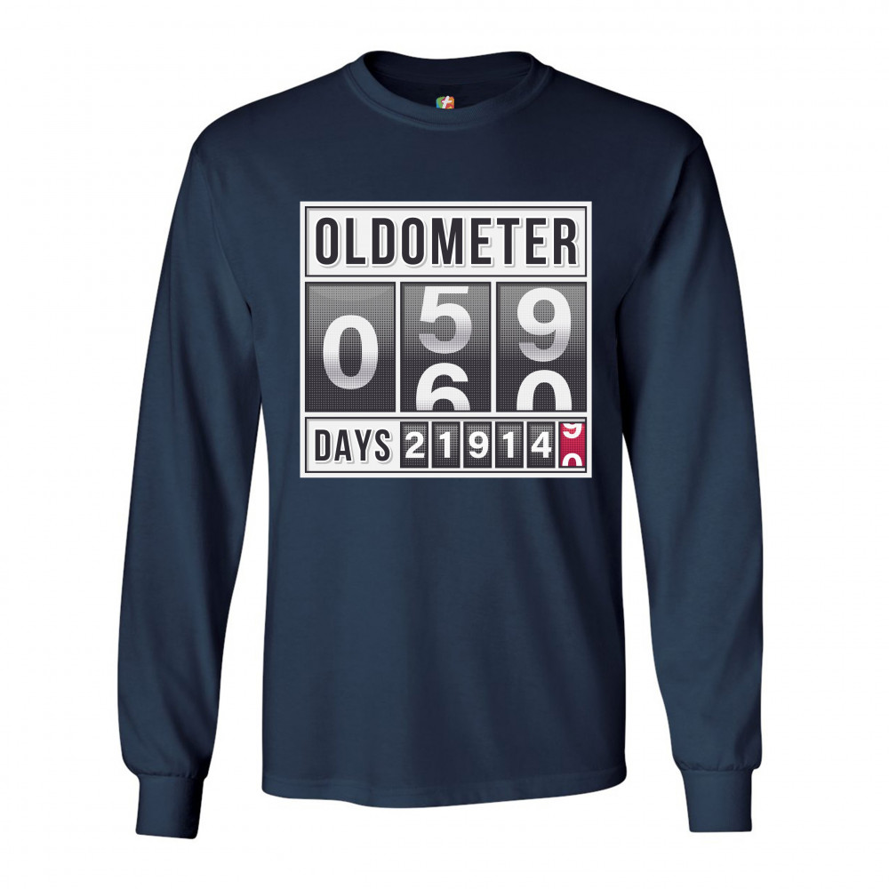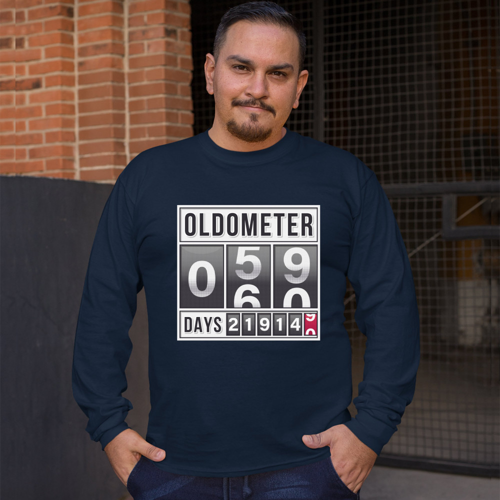 OLDOMETER 59-60 long sleeve t-shirt old lives matter funny odometer 60 af navy blue