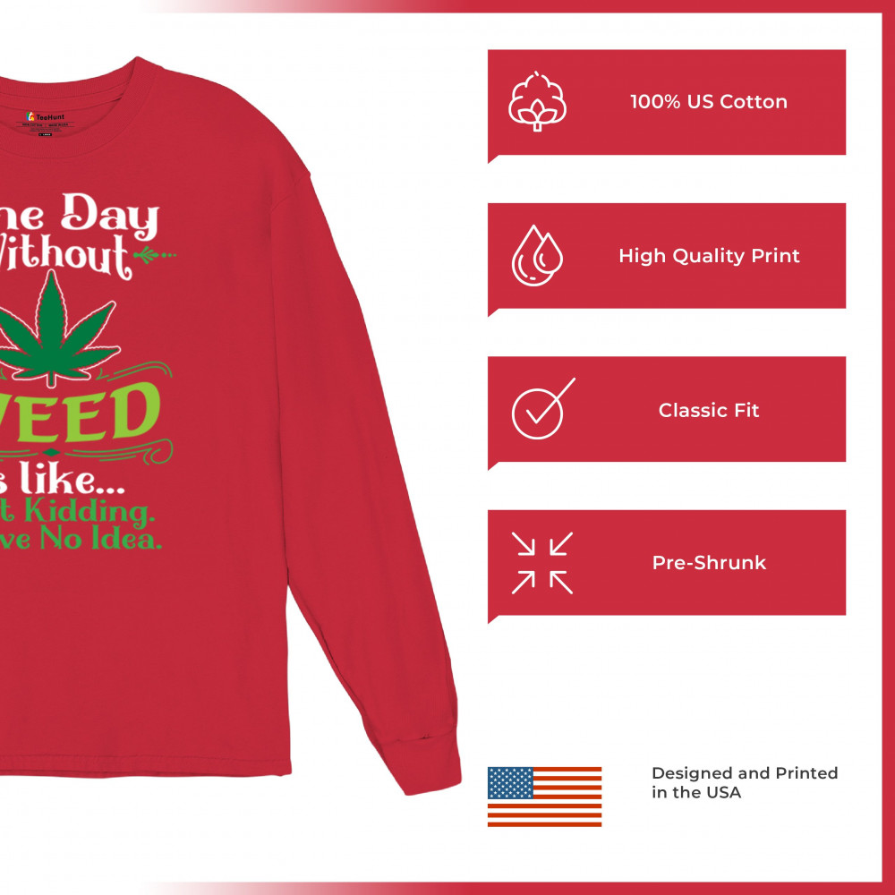 Humorous "One Day Without Weed" design with a bold cannabis leaf. Perfect for fans of Mary Jane, stoned humor, and relaxed, trippy style. Ideal for chill vibes.