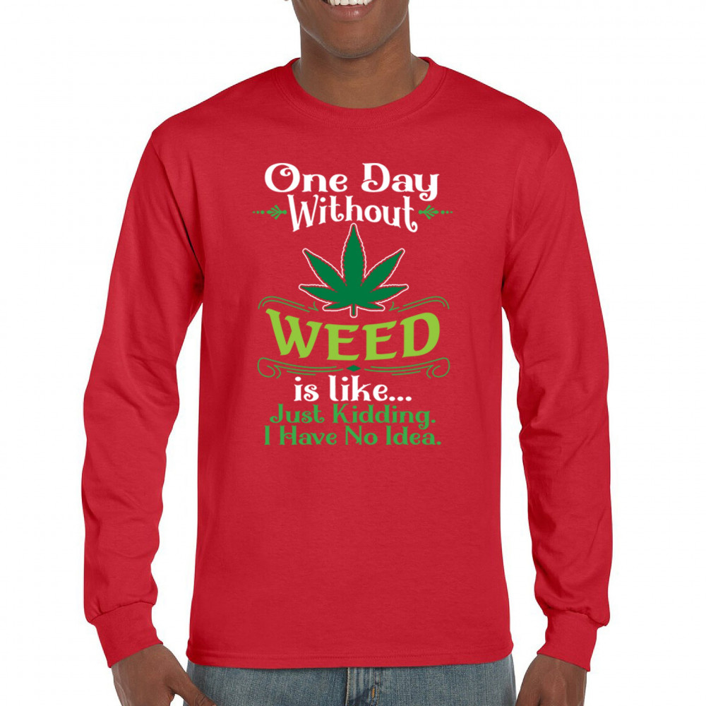 Express your love for Mary Jane and your sense of humor with our "One Day Without Weed" design. Featuring a bold cannabis leaf and a playful, witty message, this design is perfect for those who enjoy the chill vibes of cannabis culture. Ideal for relaxing with your best buds, making a statement about legalization, or simply adding some fun to your wardrobe. Embrace the stoned humor and show off your relaxed, trippy style with this unique design.