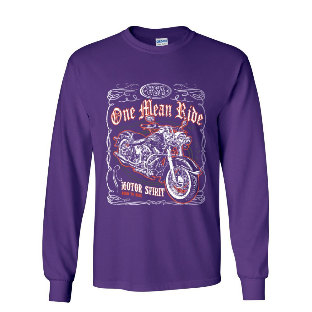 ONE MEAN RIDE long sleeve t-shirt born to ride chopper bobber route 66 biker tee purple