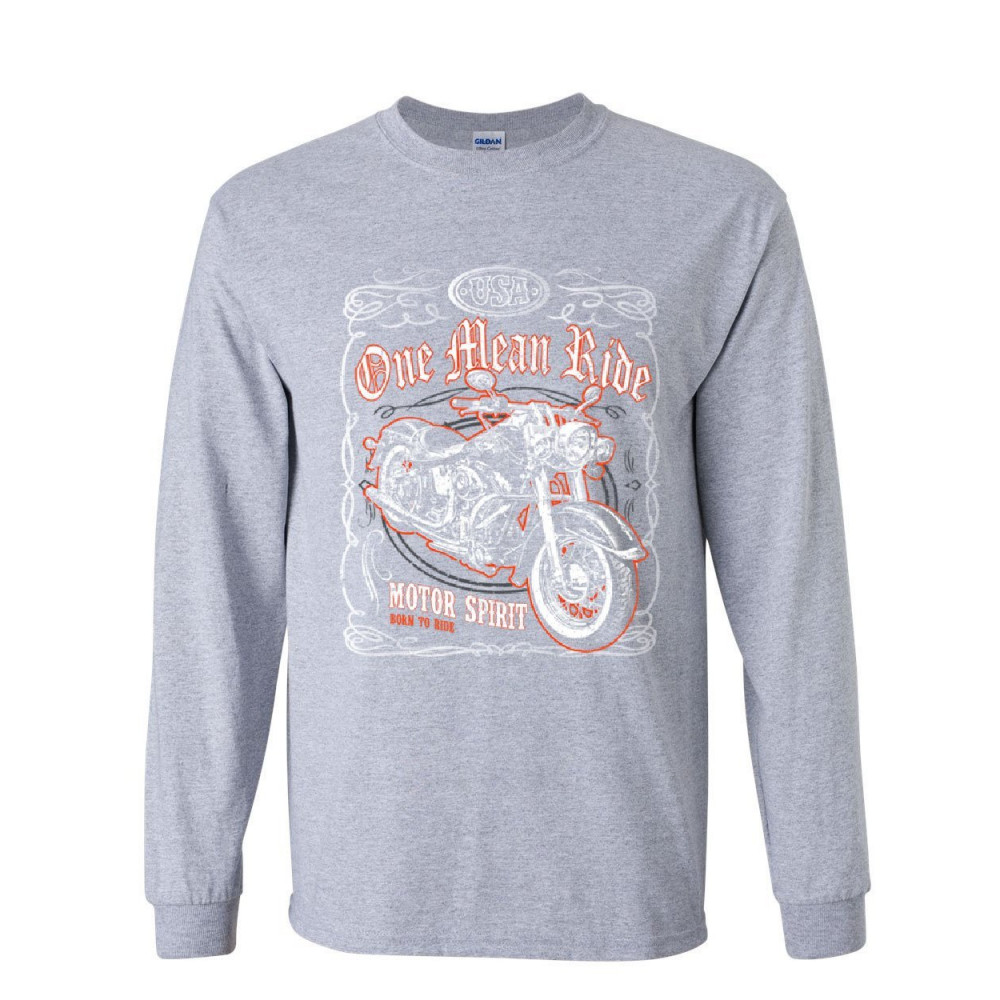 ONE MEAN RIDE long sleeve t-shirt born to ride chopper bobber route 66 biker tee gray