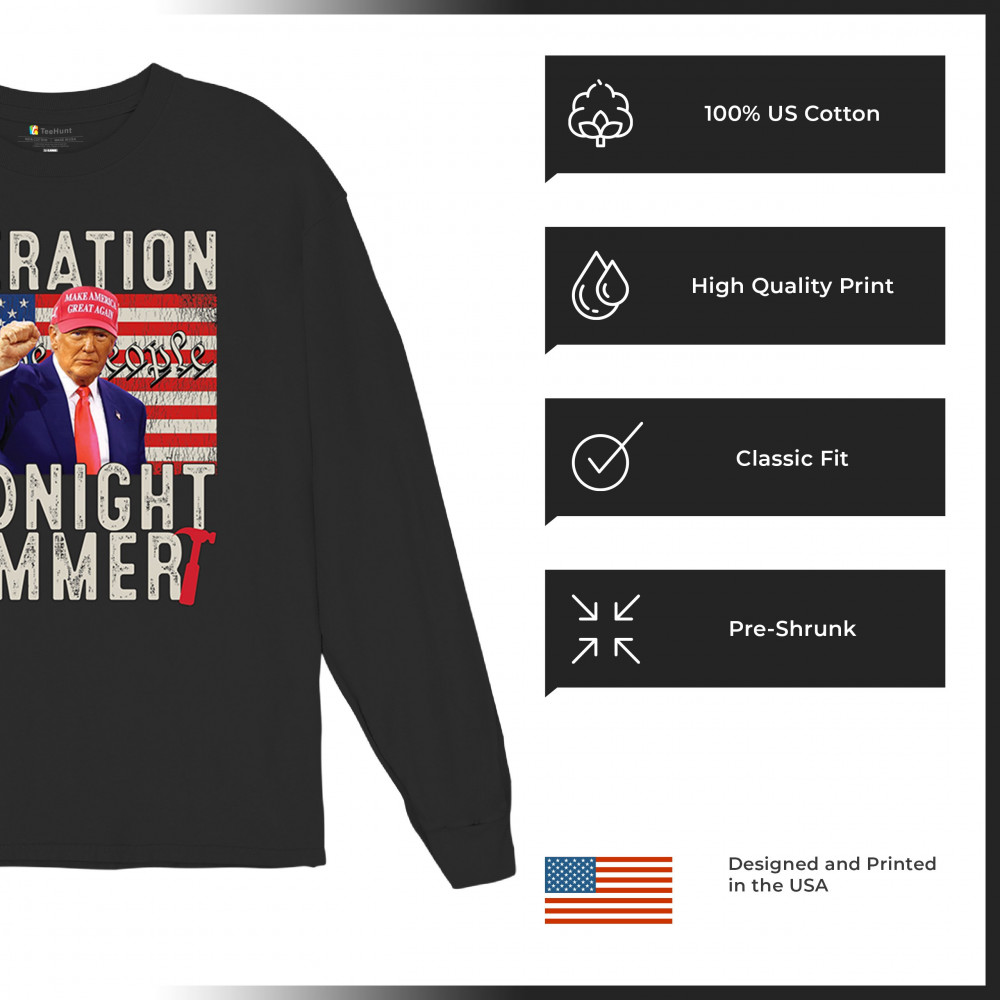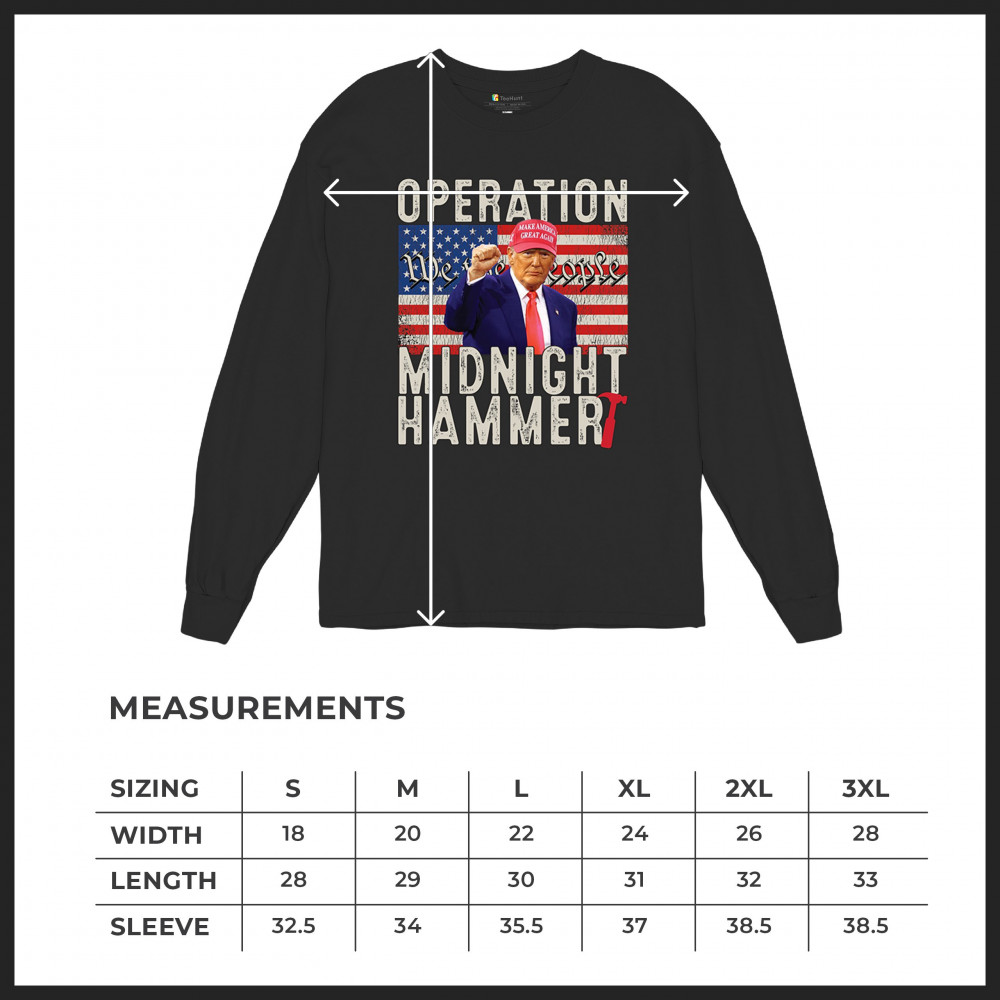 Operation Midnight Hammer is a bold, pro-America design featuring a presidential figure, hammer symbolism, and USA flag. For those who believe in America First, military strength, and Republican values. Worn by patriots who stand for freedom, leadership, and unwavering national pride.