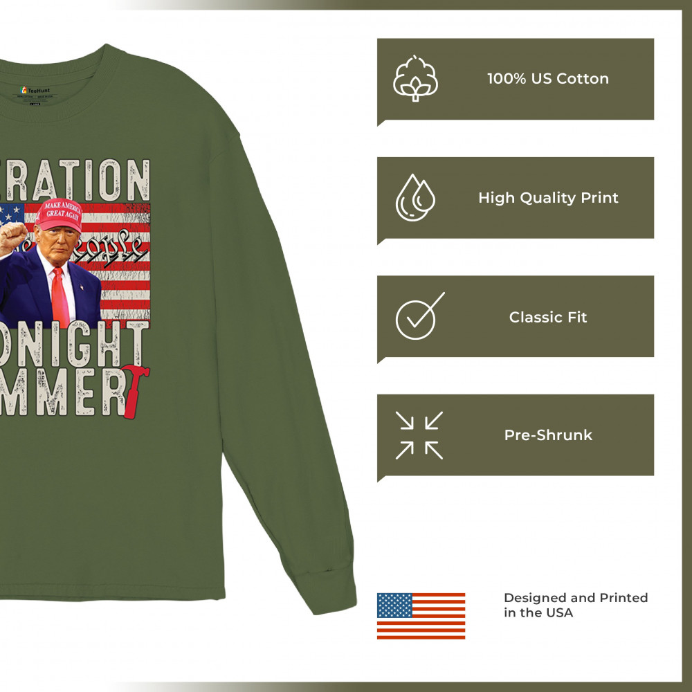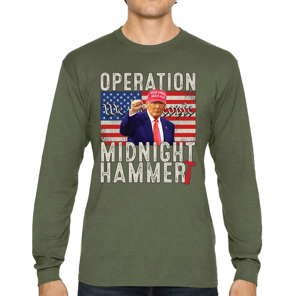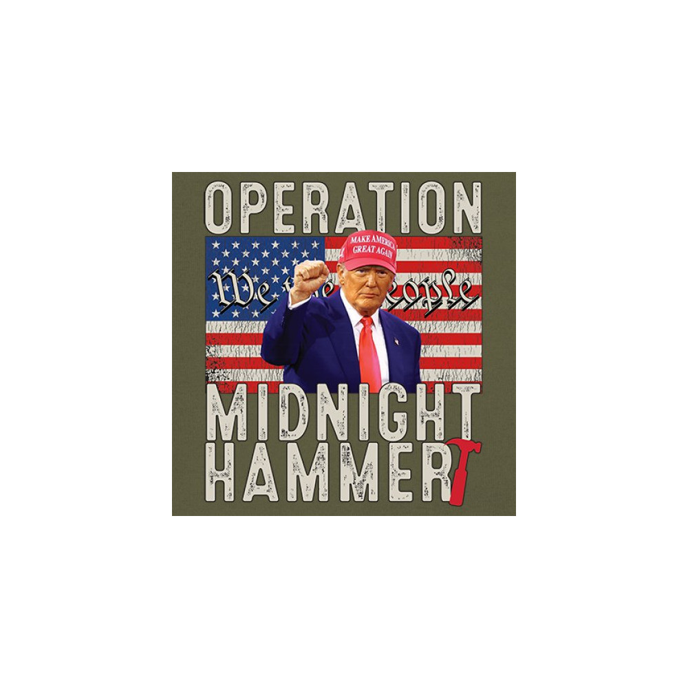 Operation Midnight Hammer is a bold, pro-America design featuring a presidential figure, hammer symbolism, and USA flag. For those who believe in America First, military strength, and Republican values. Worn by patriots who stand for freedom, leadership, and unwavering national pride.