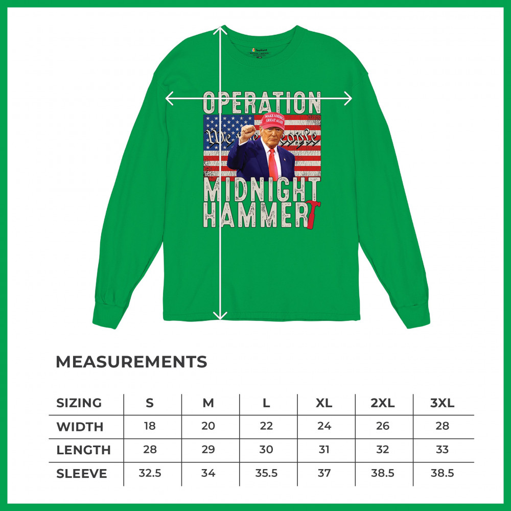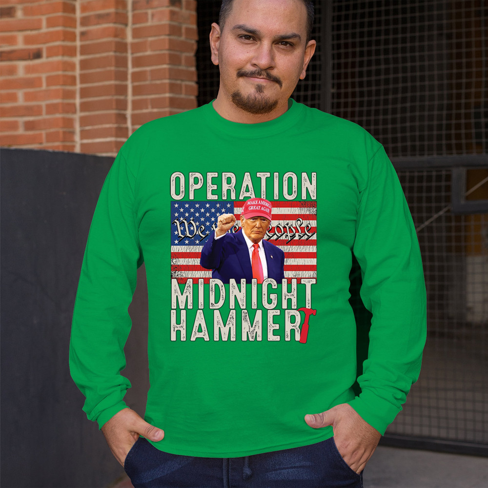 Operation Midnight Hammer is a bold, pro-America design featuring a presidential figure, hammer symbolism, and USA flag. For those who believe in America First, military strength, and Republican values. Worn by patriots who stand for freedom, leadership, and unwavering national pride.
