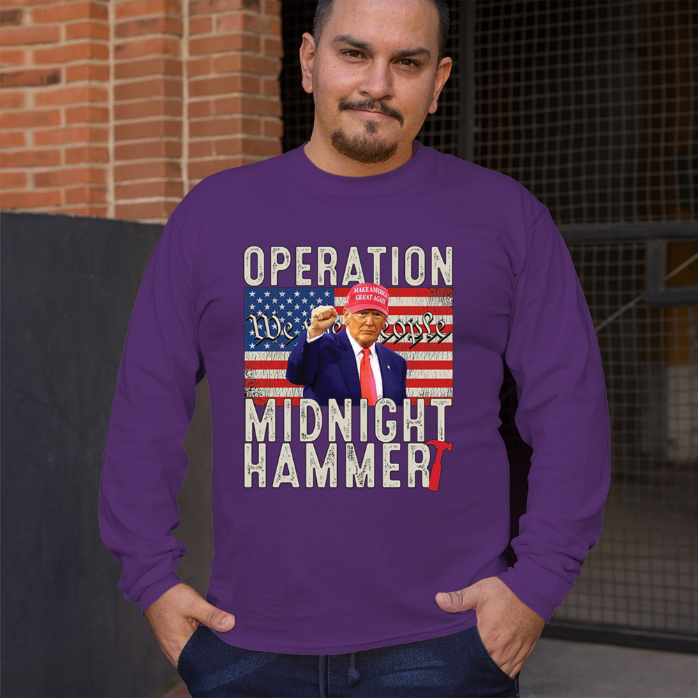 Operation Midnight Hammer design for America First patriots who stand behind military power, USA pride, and strong conservative leadership.