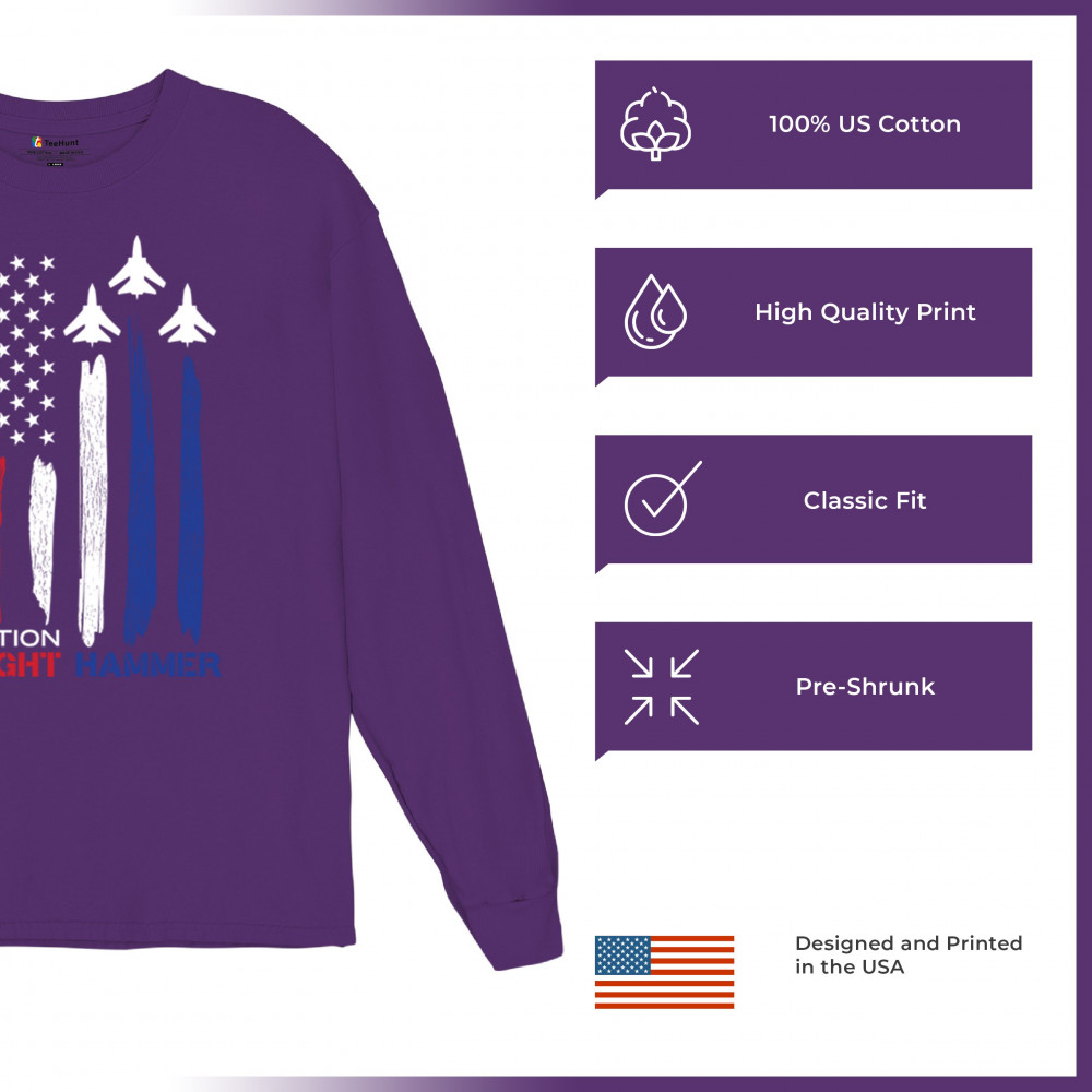 Operation Midnight Hammer captures the spirit of American strength with bold jets soaring over a brushstroke U.S. flag. Designed for patriots, veterans, and conservatives who honor military power, airforce pride, and the fight to preserve national values. Wear it loud, wear it proud.