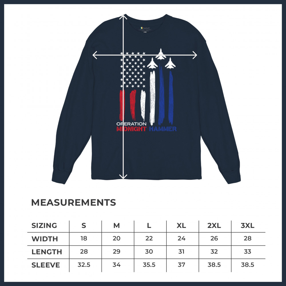 Operation Midnight Hammer captures the spirit of American strength with bold jets soaring over a brushstroke U.S. flag. Designed for patriots, veterans, and conservatives who honor military power, airforce pride, and the fight to preserve national values. Wear it loud, wear it proud.