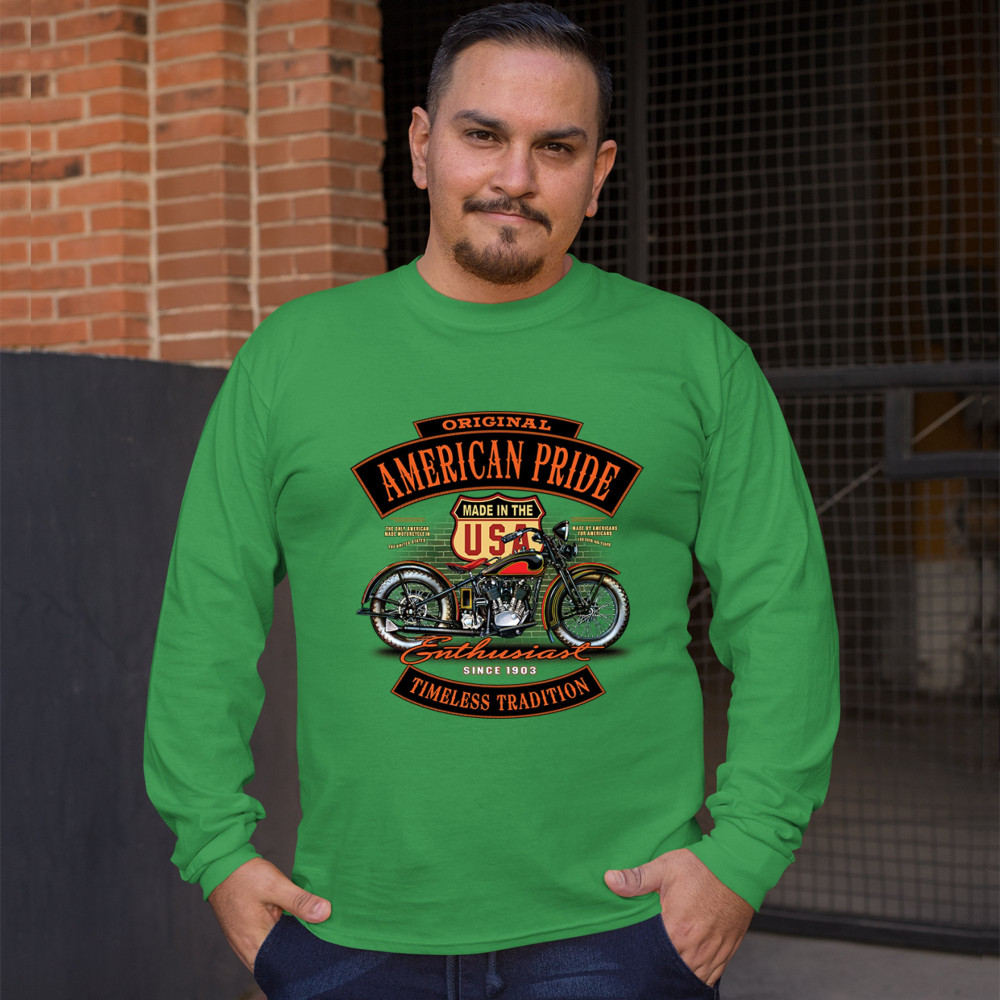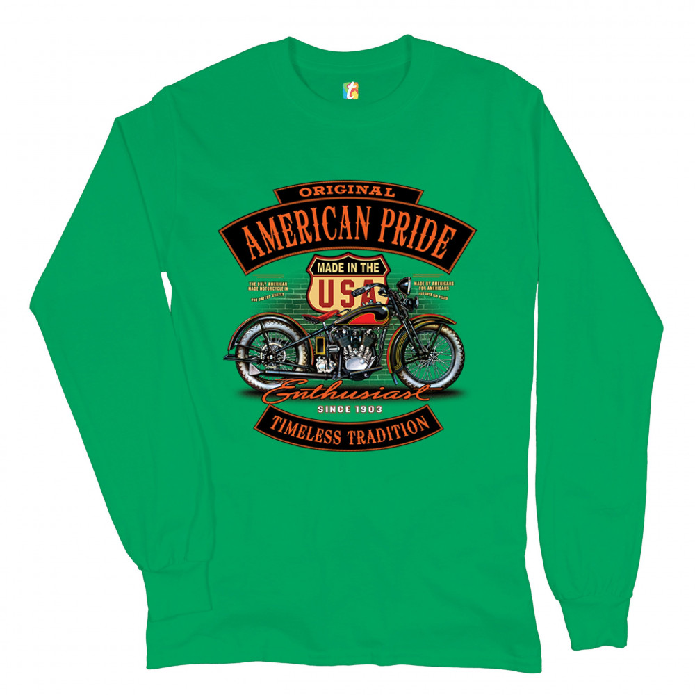 ORIGINAL AMERICAN PRIDE long sleeve t-shirt biker chopper motorcycle enthusiast green