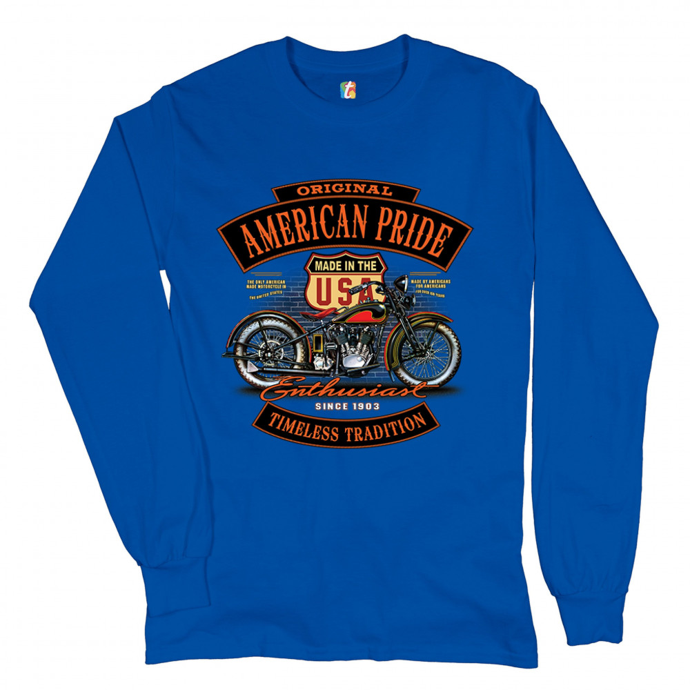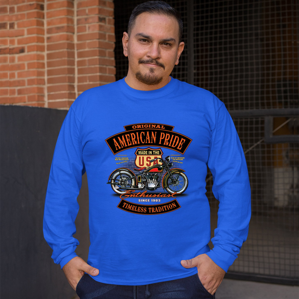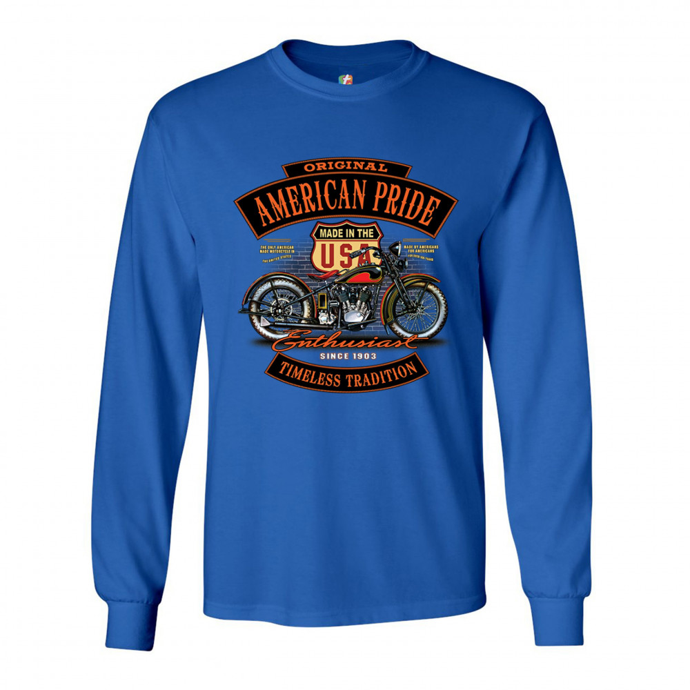 ORIGINAL AMERICAN PRIDE long sleeve t-shirt biker chopper motorcycle enthusiast royal blue