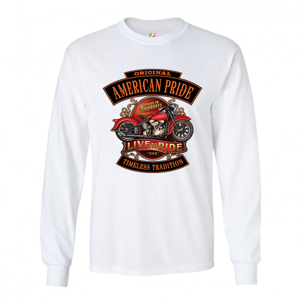 ORIGINAL AMERICAN PRIDE long sleeve t-shirt live to ride timeless tradition white
