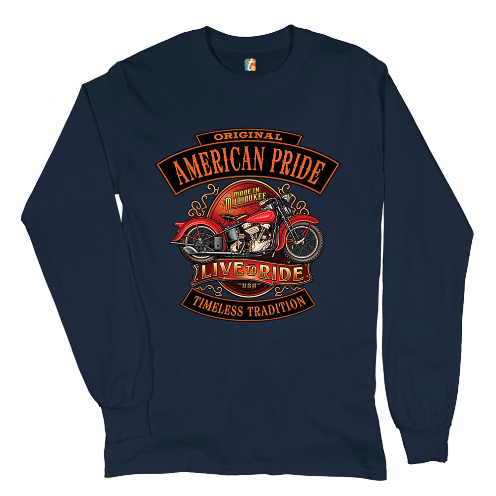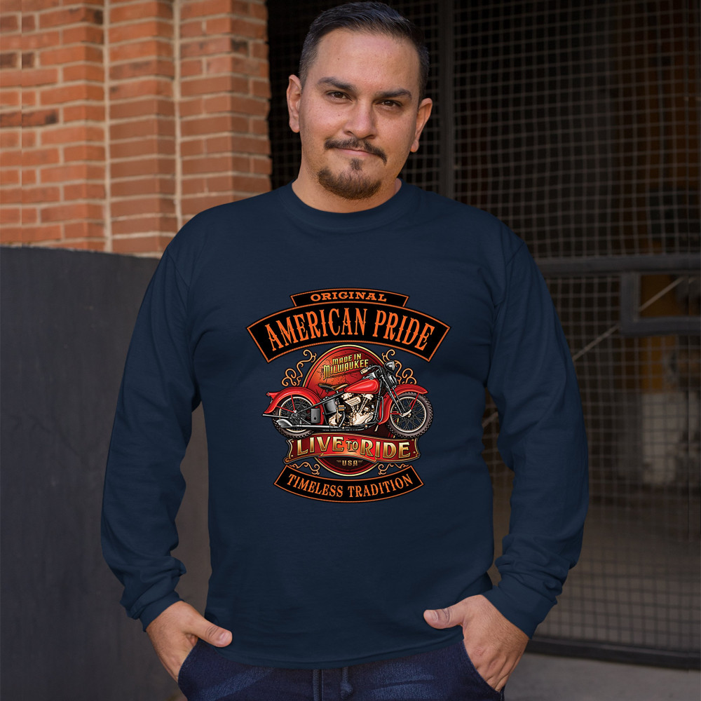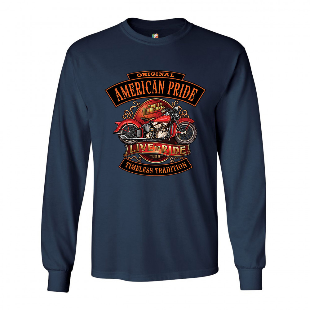 ORIGINAL AMERICAN PRIDE long sleeve t-shirt live to ride timeless tradition navy blue