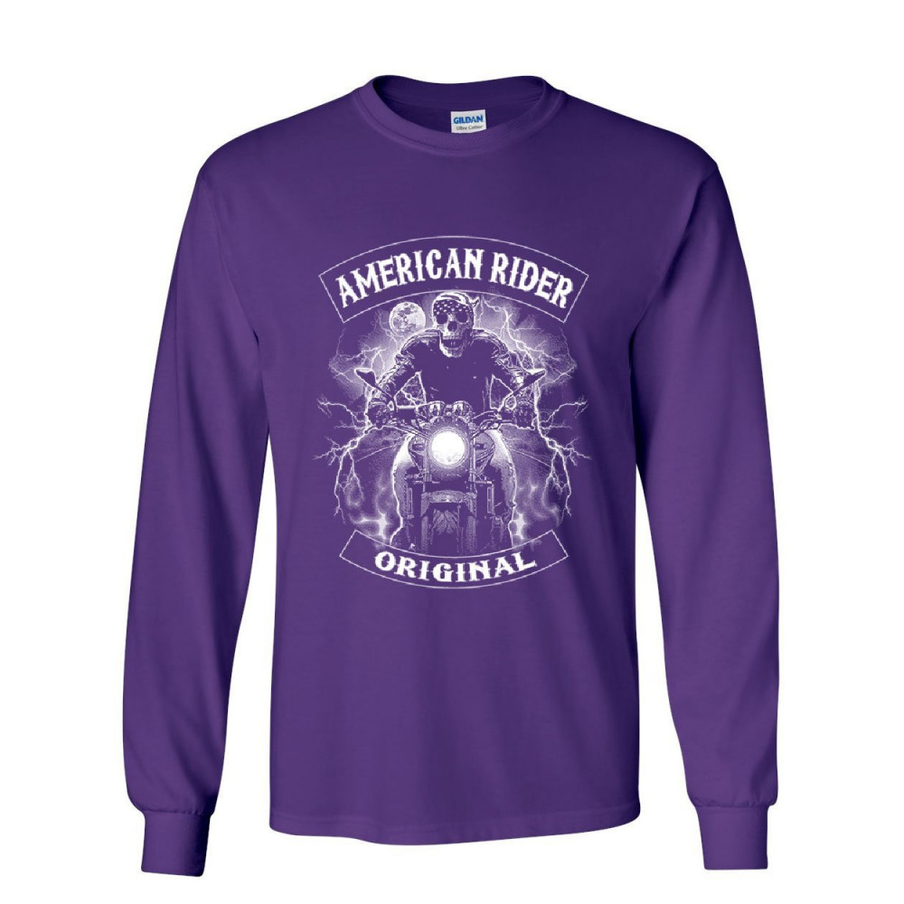 ORIGINAL AMERICAN RIDER long sleeve t-shirt skull face route 66 biker mc tee purple