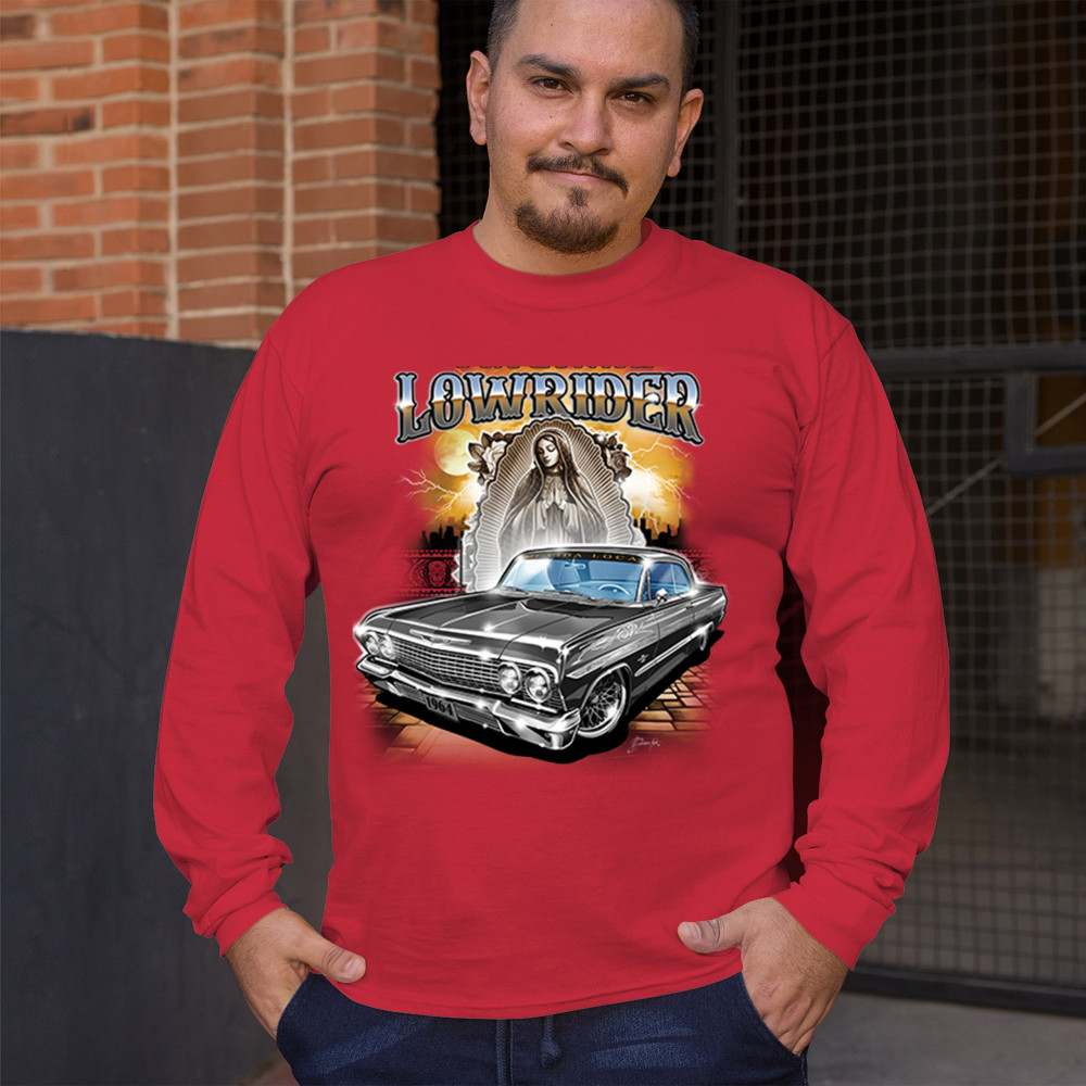Unleash your love for custom cars with our "Original Lowrider" t-shirt. Showcasing a meticulously detailed 1964 lowrider, this shirt is a must-have for anyone passionate about car culture and street art. Whether you're attending a car show, hitting the streets, or just hanging out, this tee combines style and comfort. Made from premium materials, it ensures lasting quality and a great fit. Make your wardrobe stand out with this iconic lowrider design.
