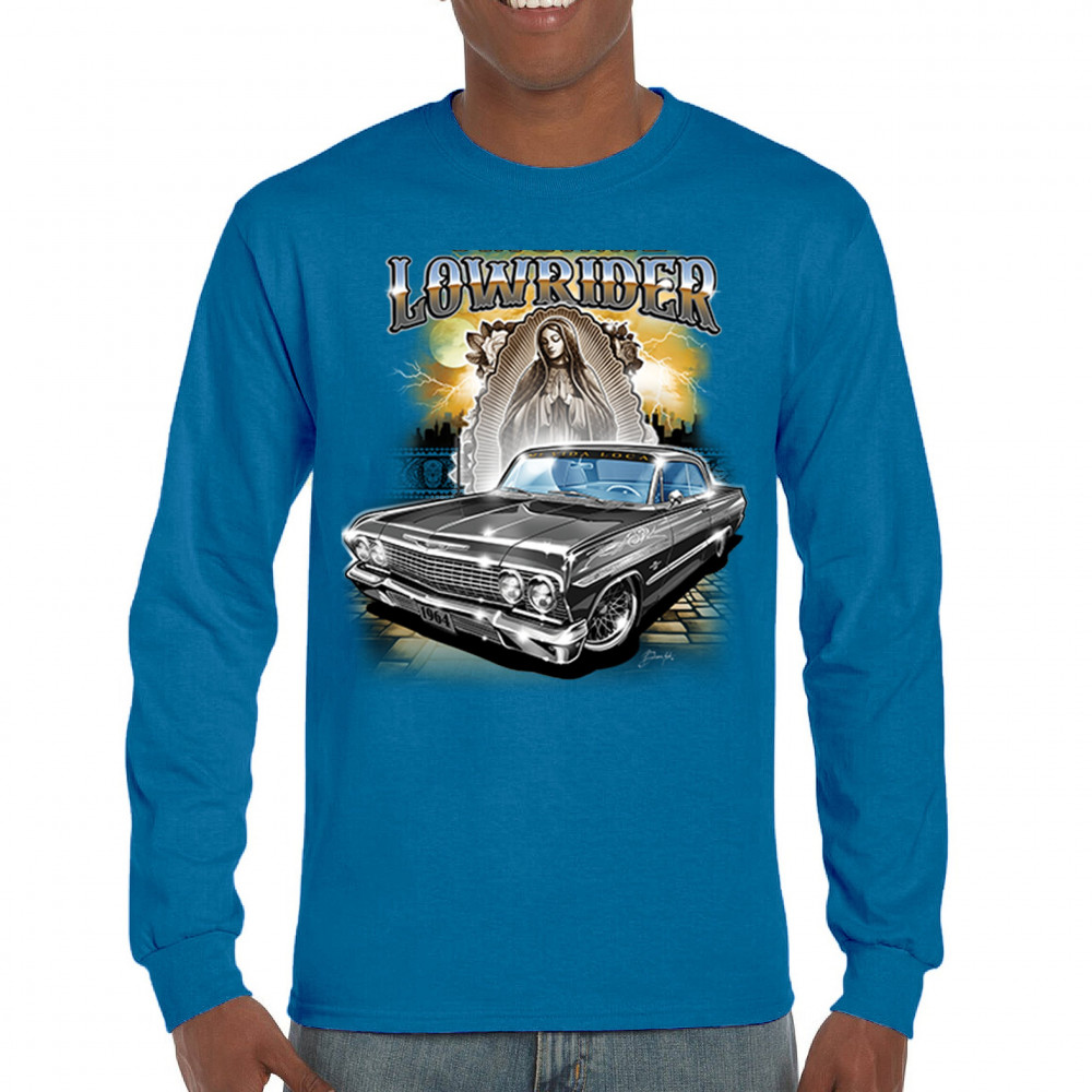 Unleash your love for custom cars with our "Original Lowrider" t-shirt. Showcasing a meticulously detailed 1964 lowrider, this shirt is a must-have for anyone passionate about car culture and street art. Whether you're attending a car show, hitting the streets, or just hanging out, this tee combines style and comfort. Made from premium materials, it ensures lasting quality and a great fit. Make your wardrobe stand out with this iconic lowrider design.
