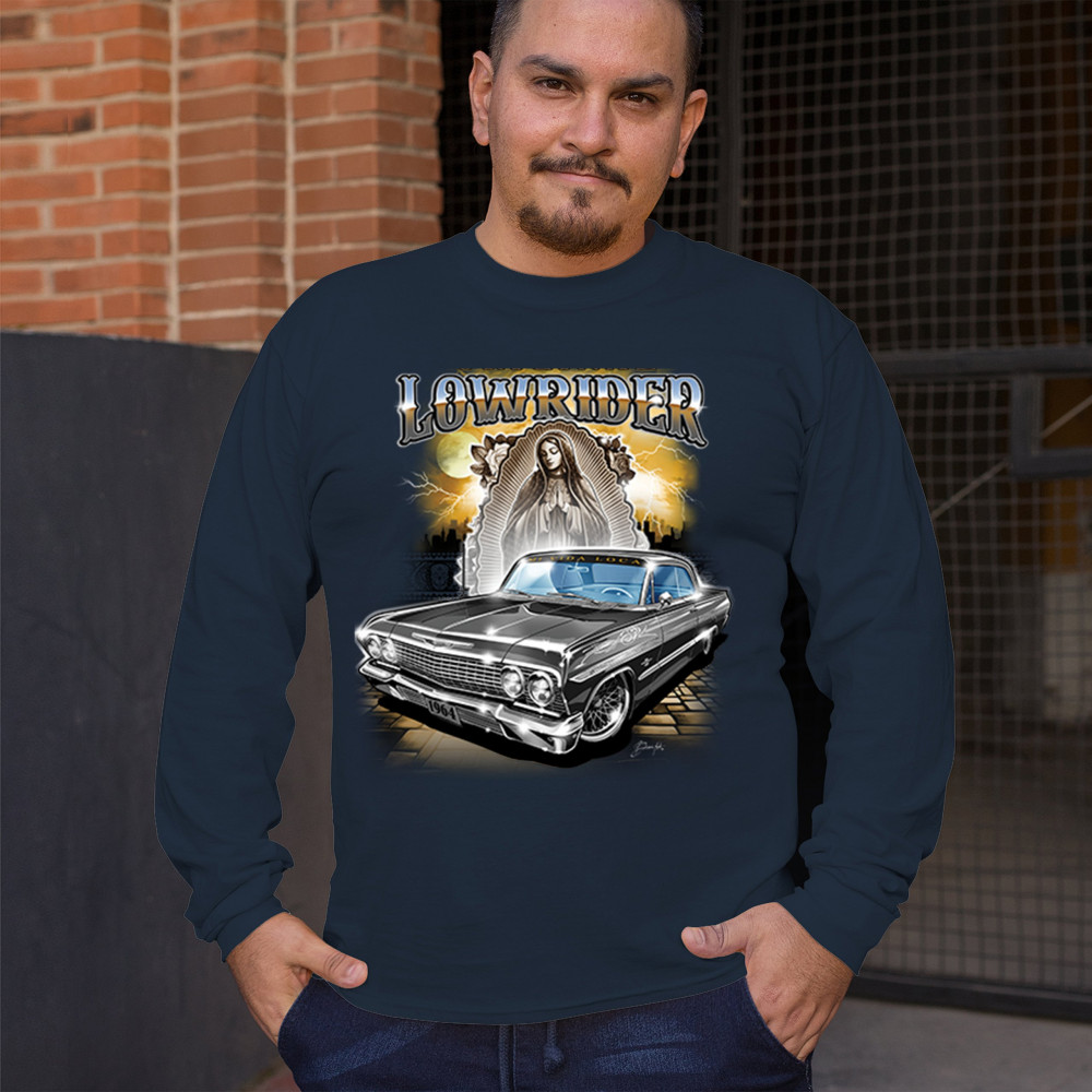 Unleash your love for custom cars with our "Original Lowrider" t-shirt. Showcasing a meticulously detailed 1964 lowrider, this shirt is a must-have for anyone passionate about car culture and street art. Whether you're attending a car show, hitting the streets, or just hanging out, this tee combines style and comfort. Made from premium materials, it ensures lasting quality and a great fit. Make your wardrobe stand out with this iconic lowrider design.