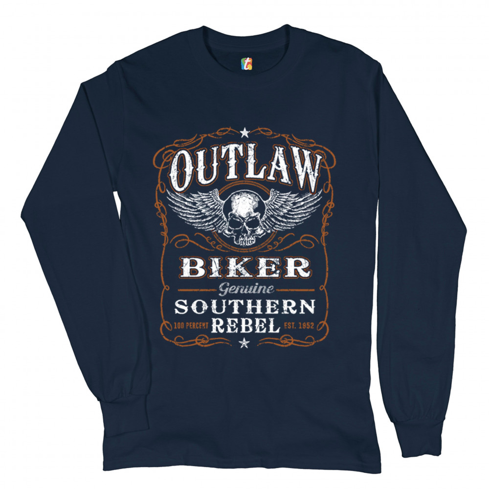 OUTLAW BIKER long sleeve t-shirt genuine southern rebel winged skull face navy blue