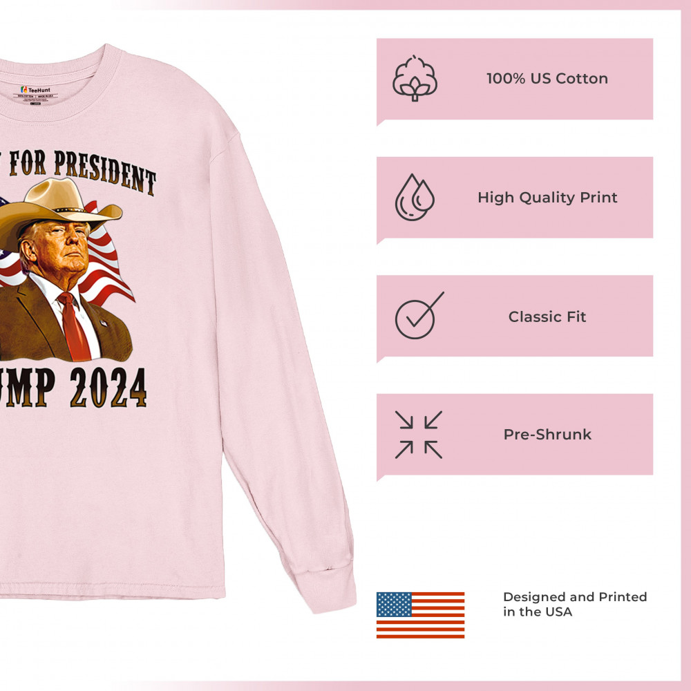 The "Outlaw for President" Trump 2024 design is a powerful symbol of American resilience and conservative pride. Featuring Donald J. Trump in a cowboy hat with the American flag waving behind, this design speaks to supporters who believe in the America First movement, conservative values, and a rebel spirit. Ideal for rallies, patriotic events, and anyone looking to make a bold statement for the 47th President of the United States.