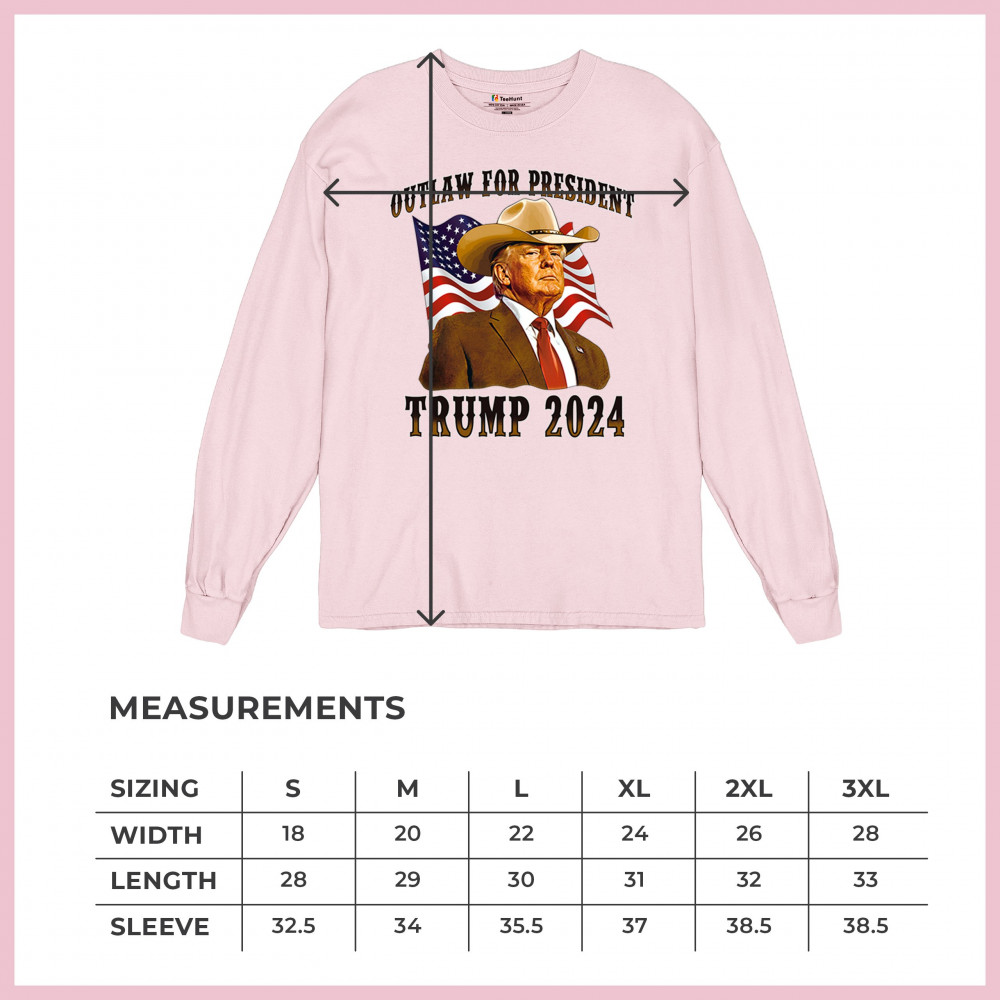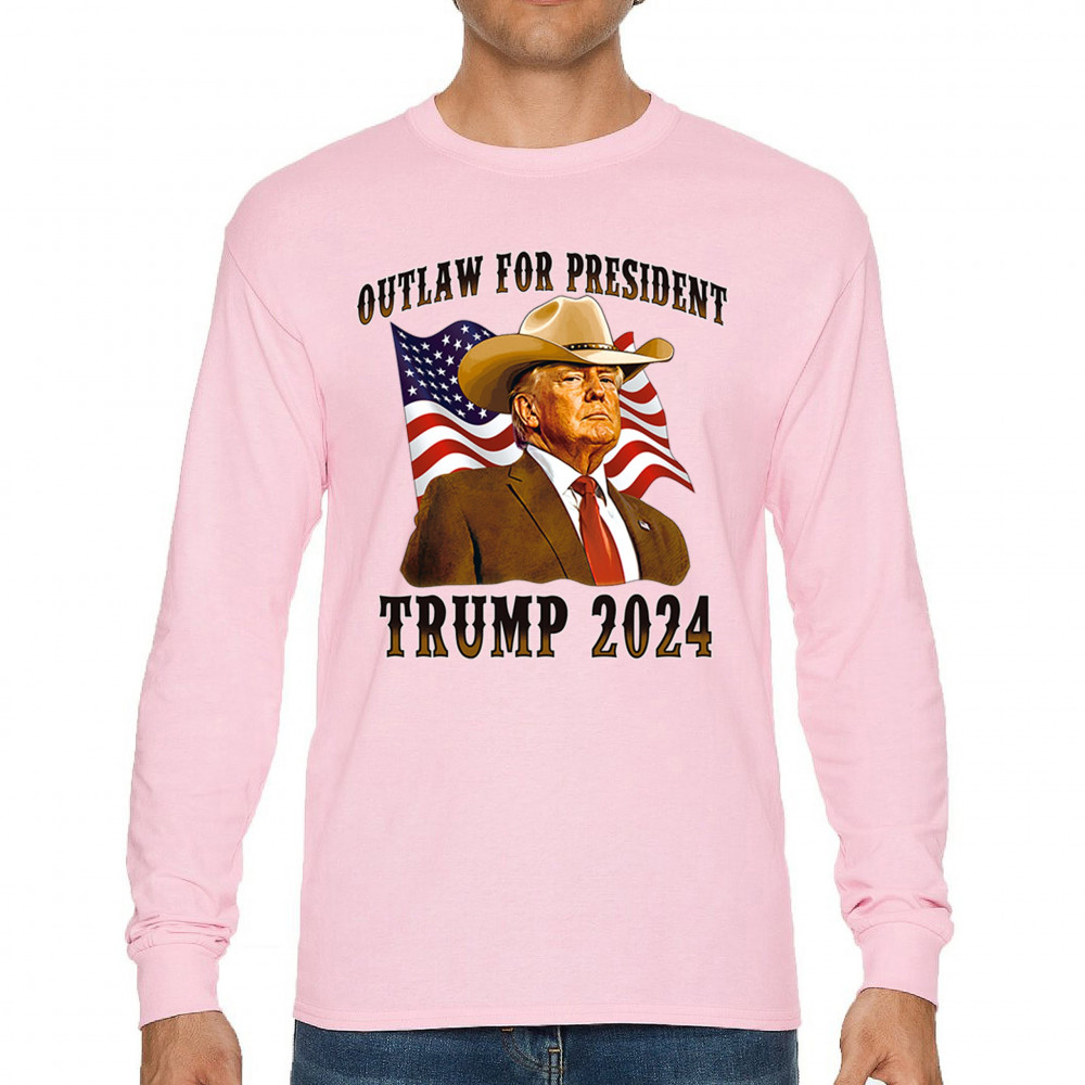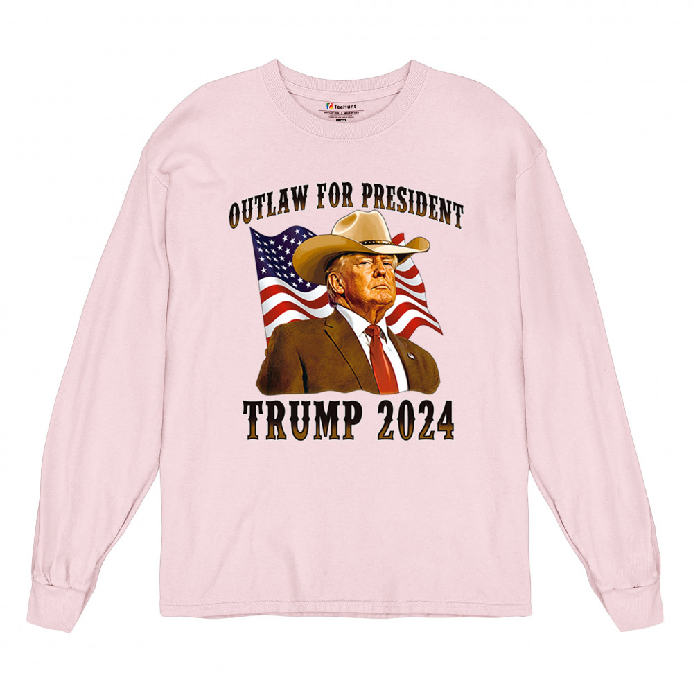 Bold "Outlaw for President" Trump 2024 design for conservative supporters, featuring Donald J. Trump and the American flag. Show your patriotism.