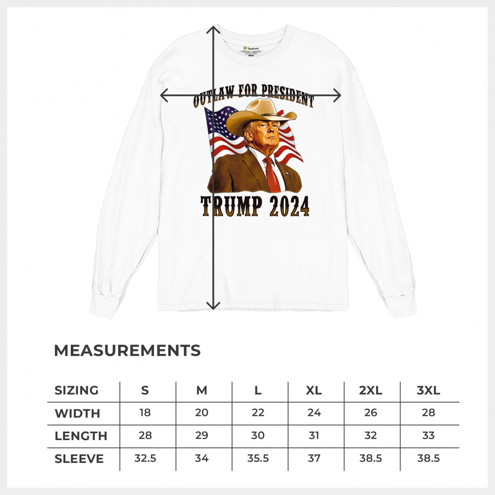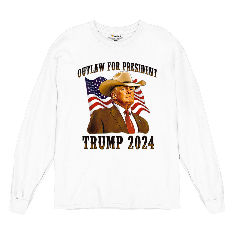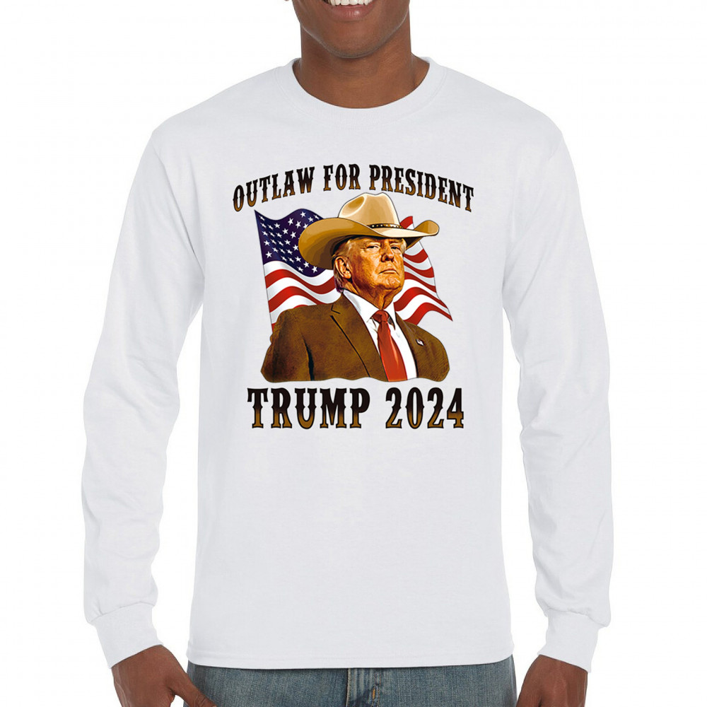 Bold "Outlaw for President" Trump 2024 design for conservative supporters, featuring Donald J. Trump and the American flag. Show your patriotism.