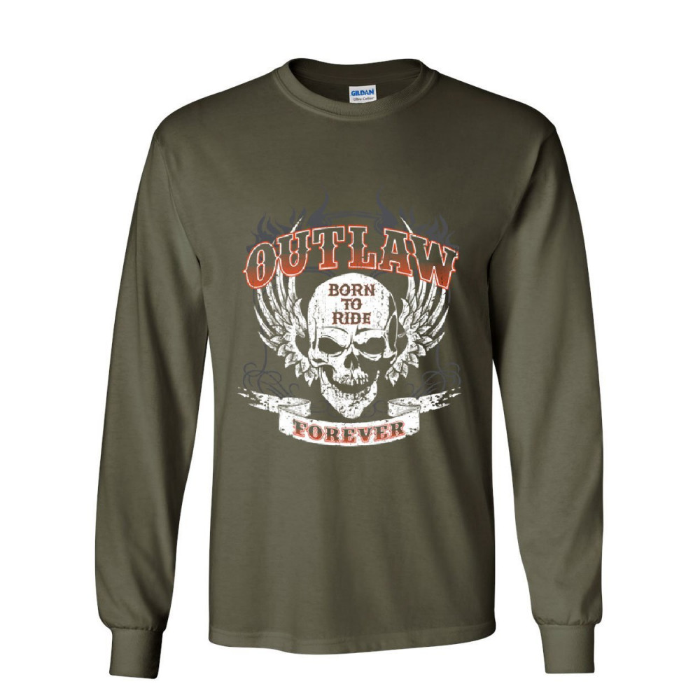 OUTLAW FOREVER long sleeve t-shirt born to ride mc chopper bobber tee military green