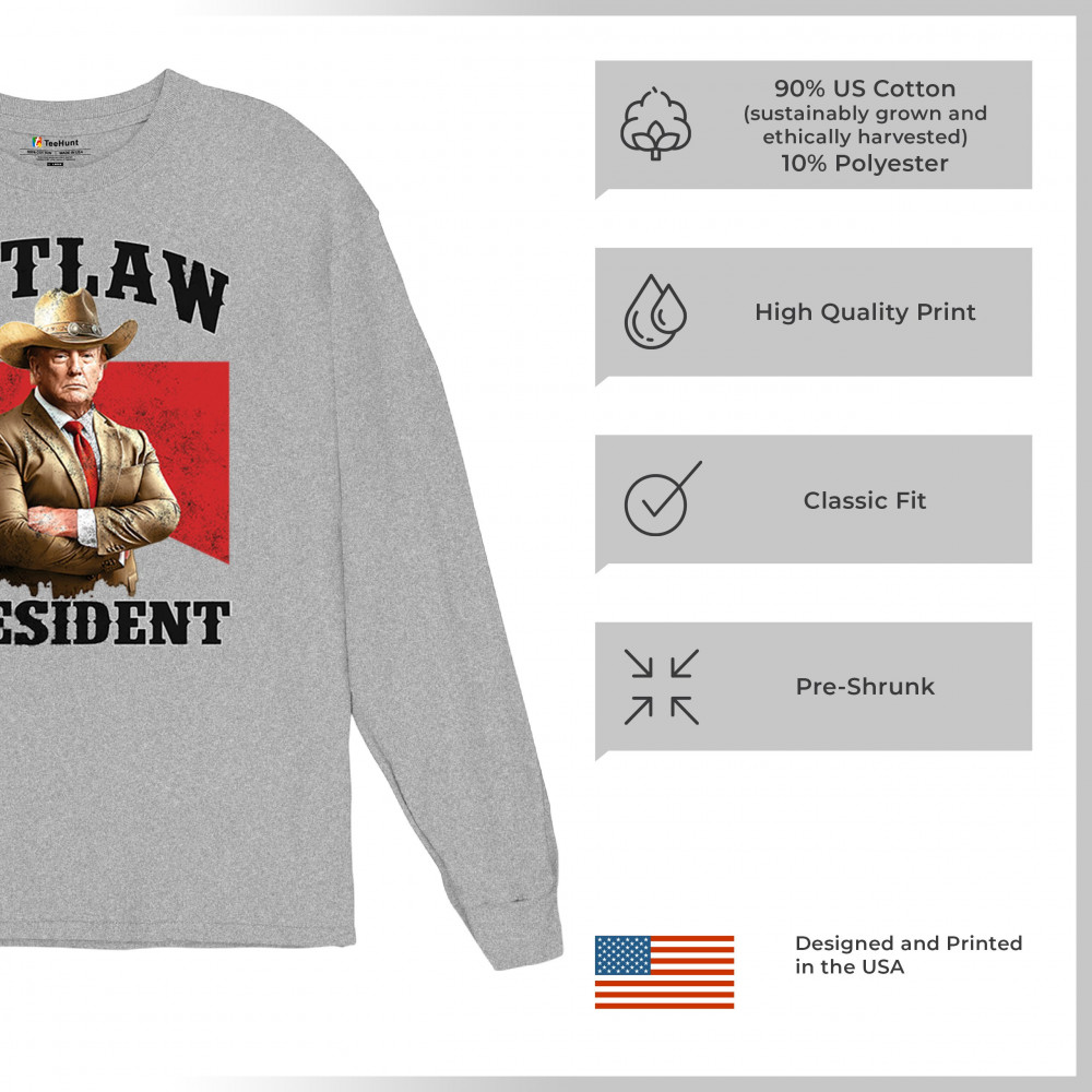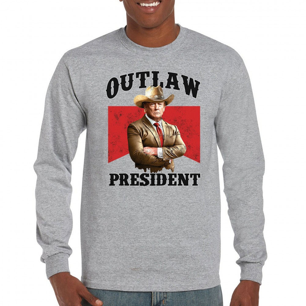 Celebrate America First with the "Outlaw President" design! Support Donald J. Trump, the Red Wave, and conservative values in bold style.