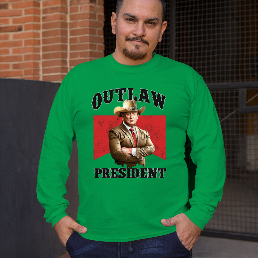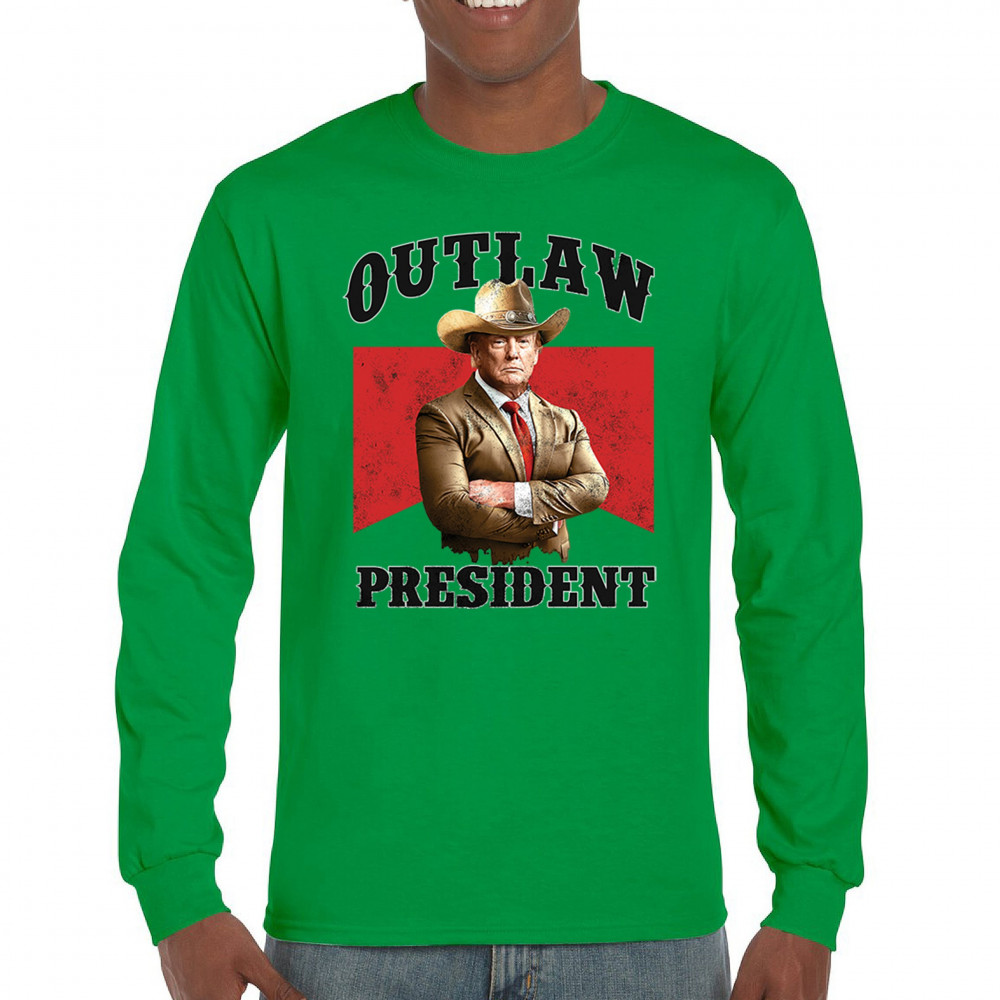 Celebrate America First with the "Outlaw President" design! Support Donald J. Trump, the Red Wave, and conservative values in bold style.