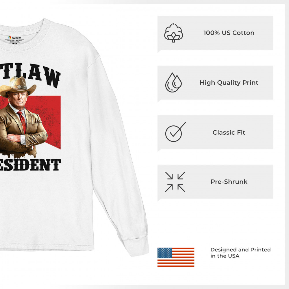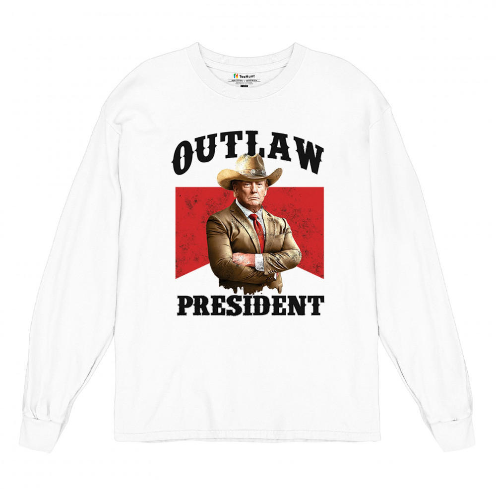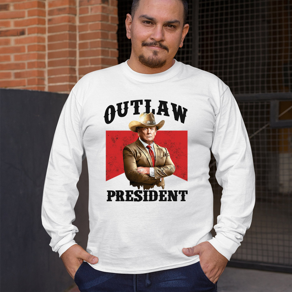 Celebrate America First with the "Outlaw President" design! Support Donald J. Trump, the Red Wave, and conservative values in bold style.