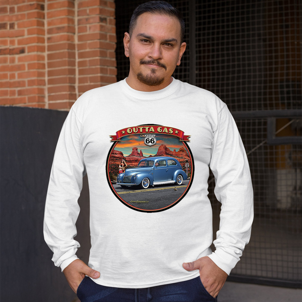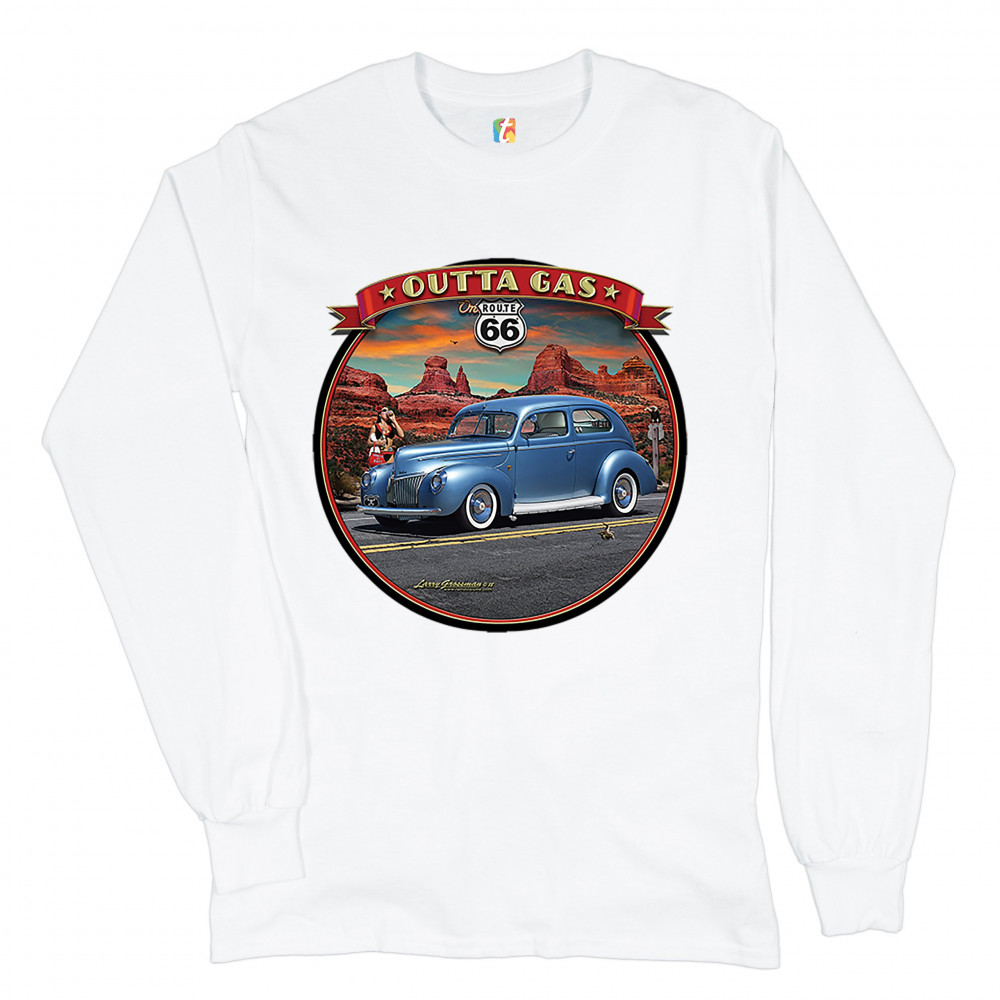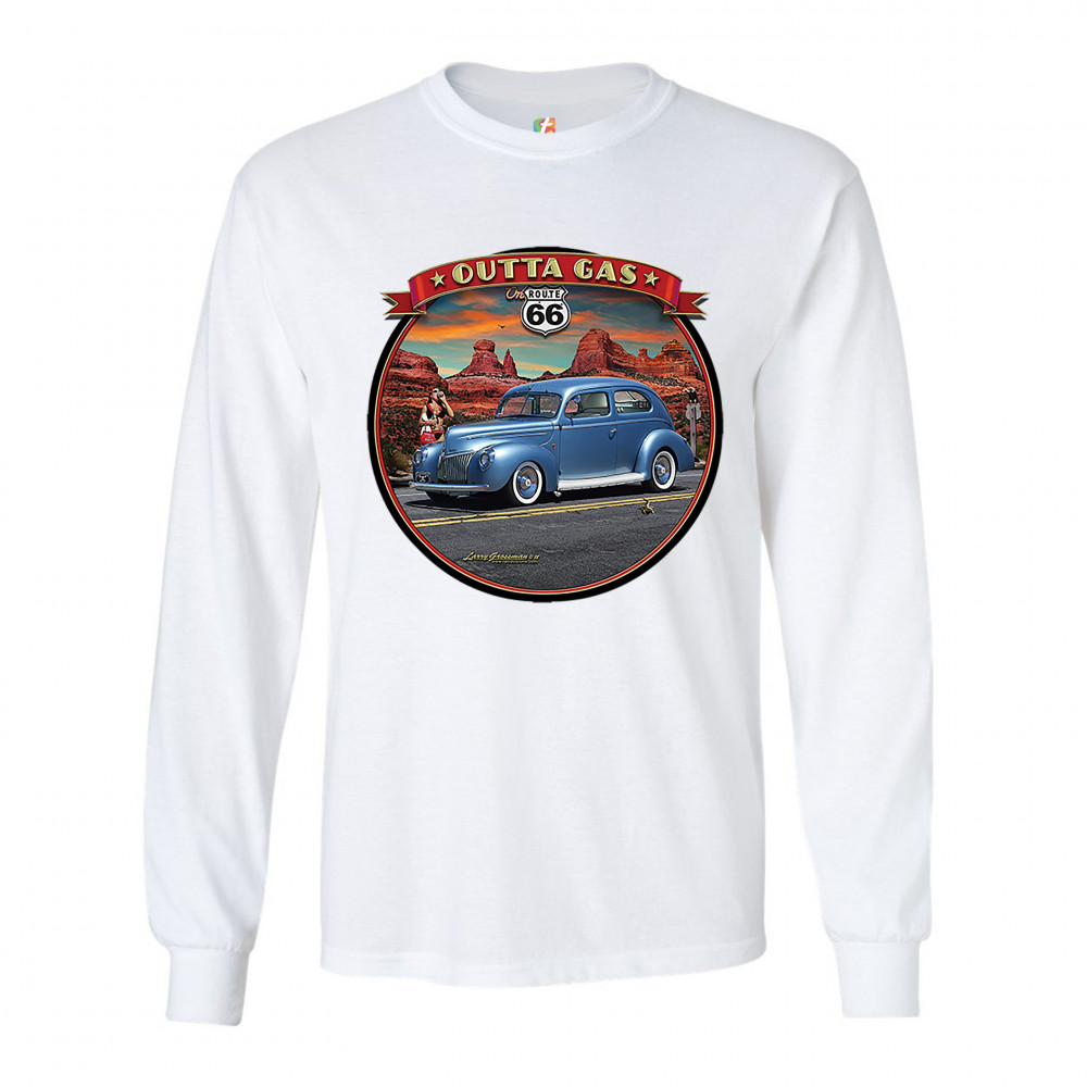 OUTTA GAS ON ROUTE 66 long sleeve t-shirt the mother road retro vintage white