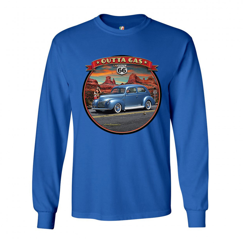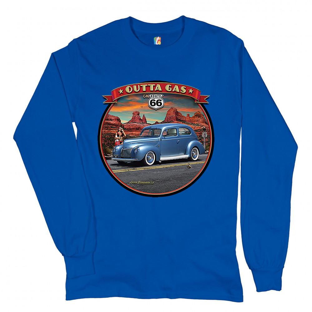 OUTTA GAS ON ROUTE 66 long sleeve t-shirt the mother road retro vintage royal blue