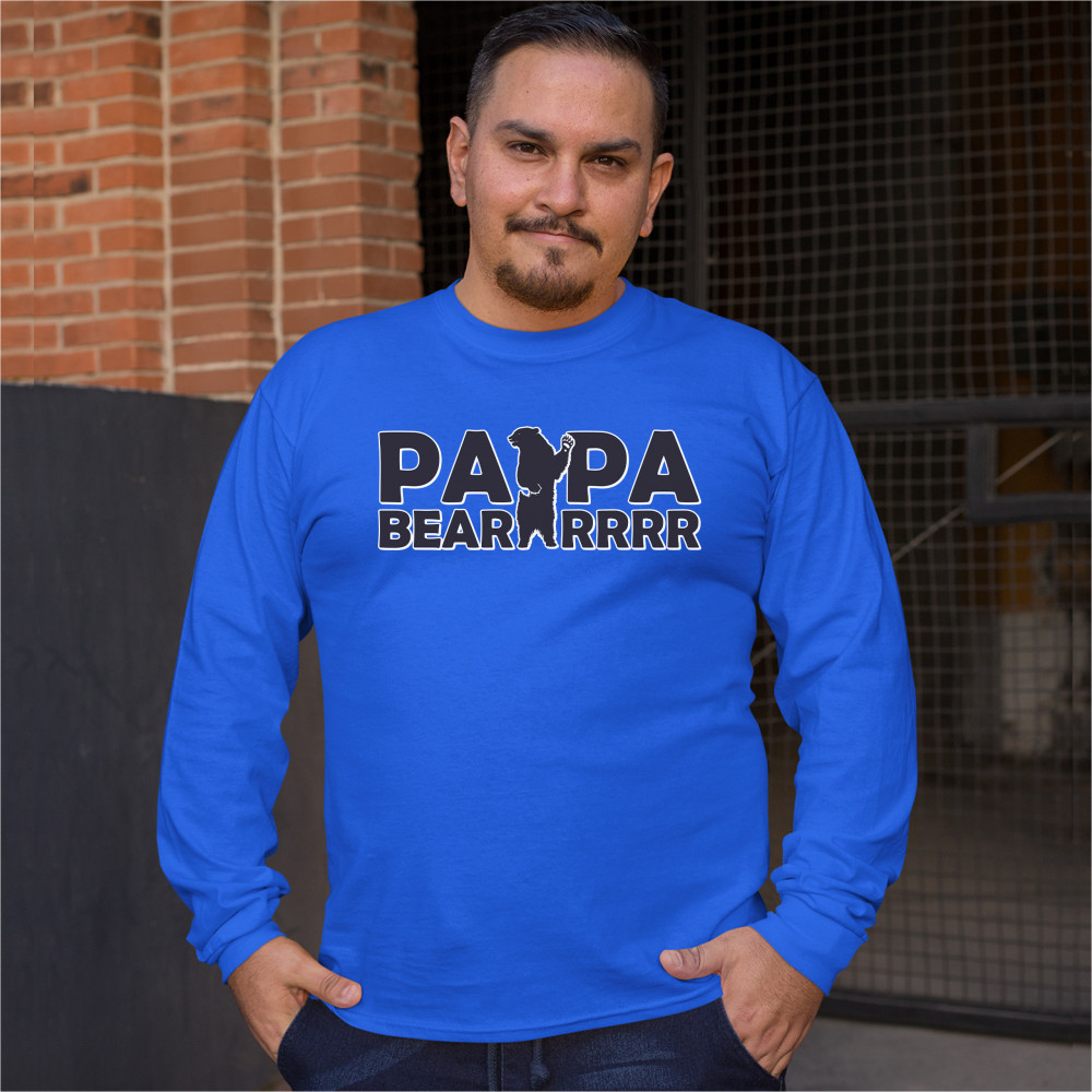 PAPA BEAR long sleeve t-shirt father's day gift funny protective dad daddy royal blue